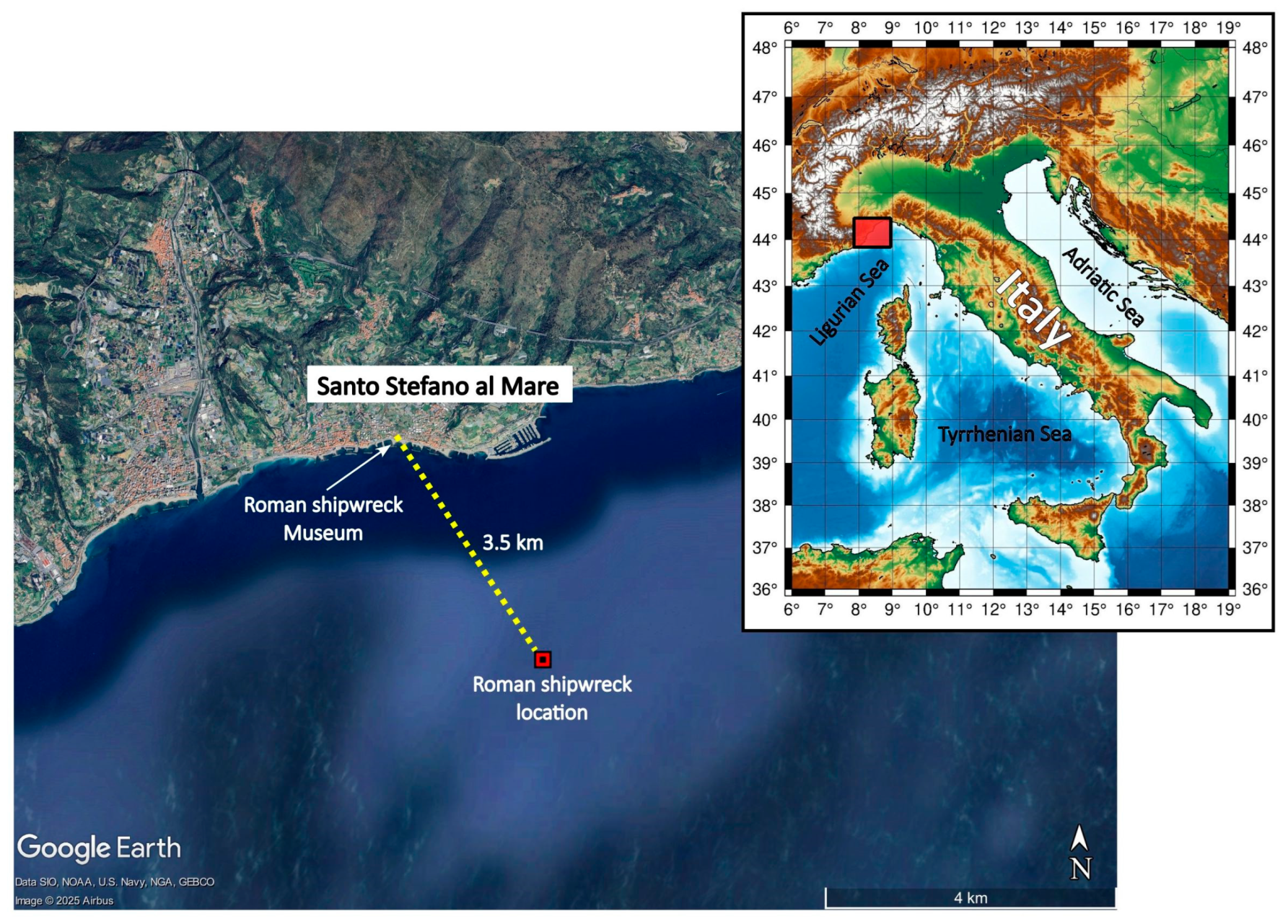 27]. Crucially, most discoveries are the result of fishing or diving activity and not of systematic research, as is the case of the Santo Stefano Romano shipwreck that was found off the coast of Santo Stefano al Mare, a small coastal village in the province of Imperia, Italy [