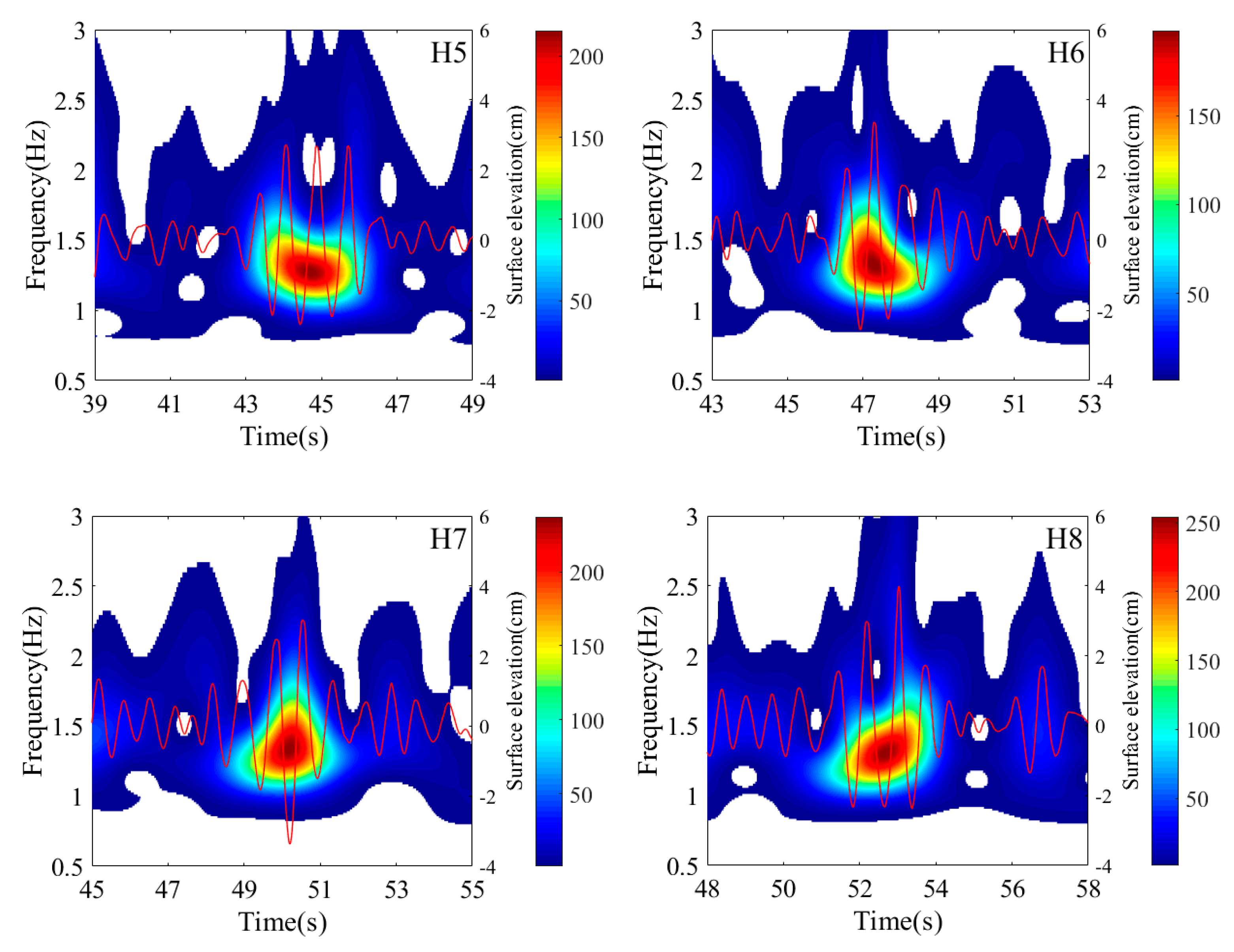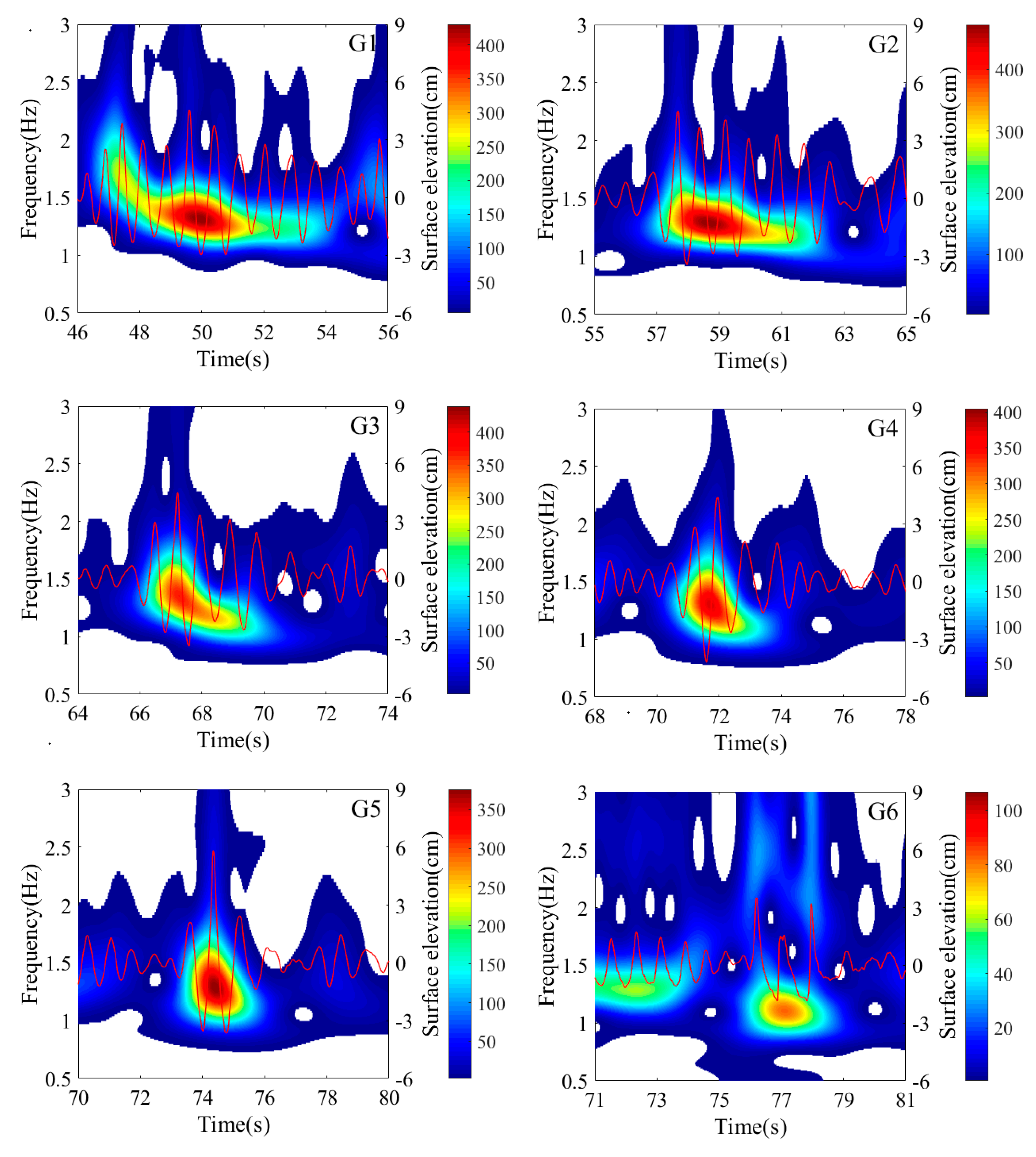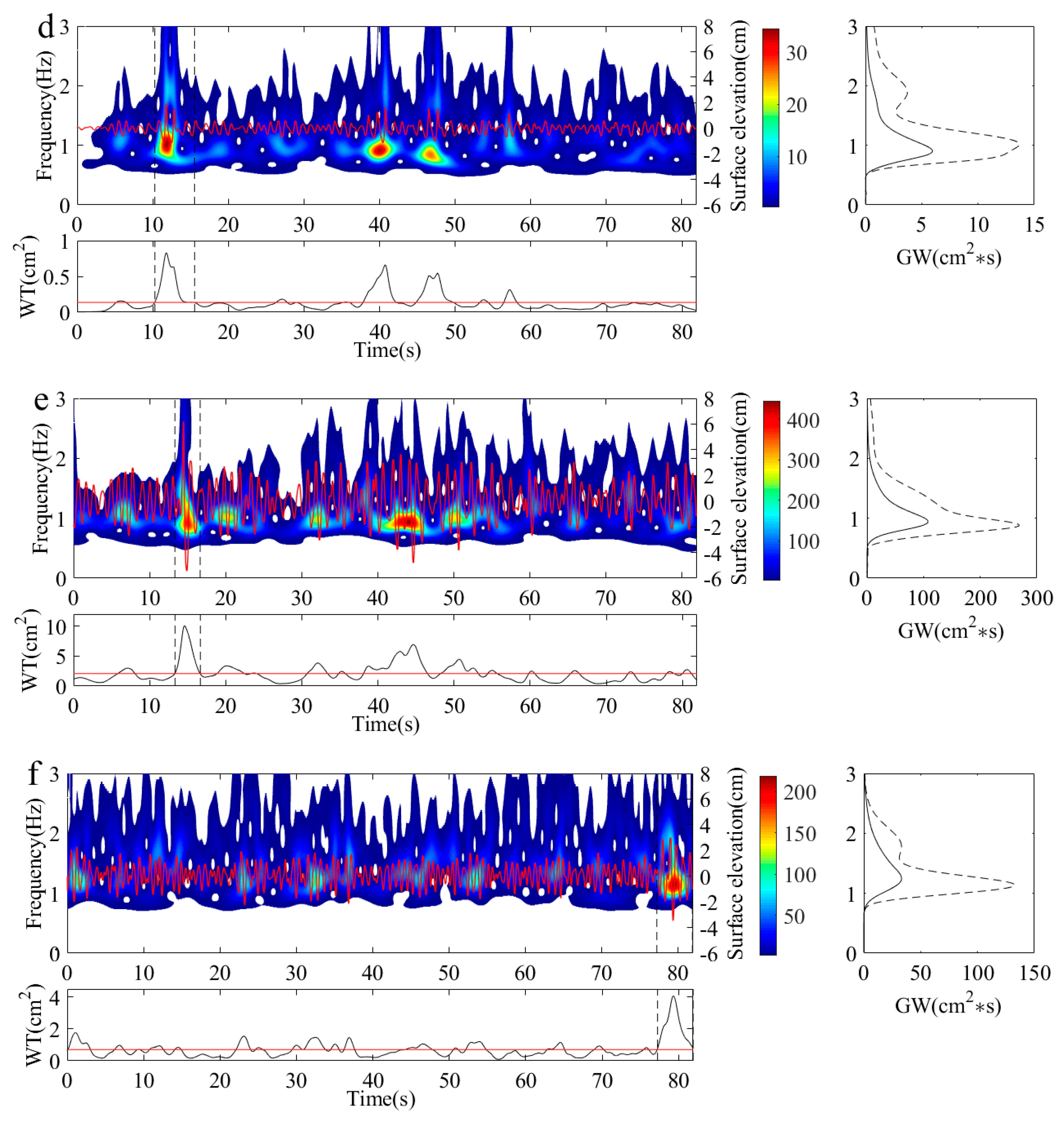 4.2. Wavelet Analysis of Different Types of Freak Waves