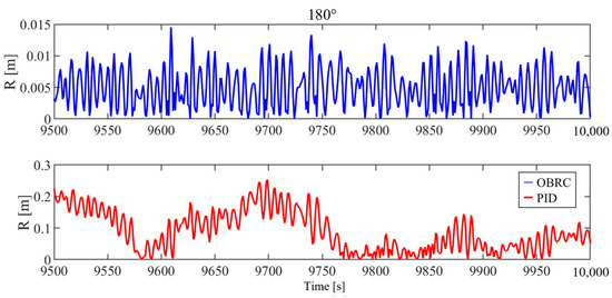 Comparison between OBRC and PID controller at 180° incidence angle.
