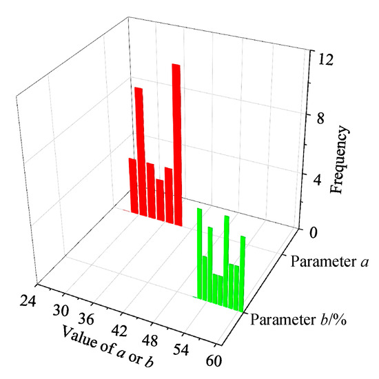 | Correlation coefficient between power function fitting parameters a and b | |