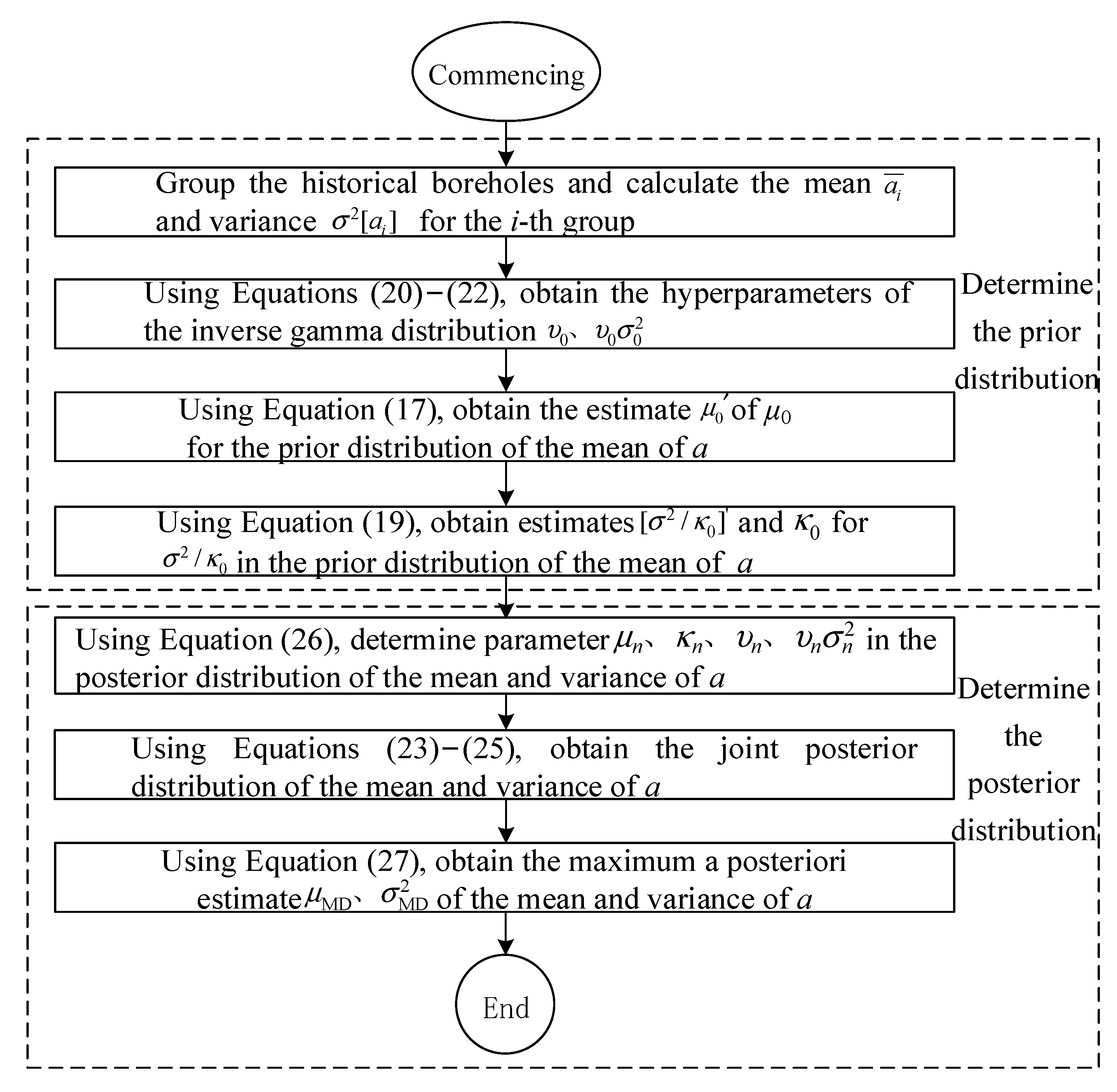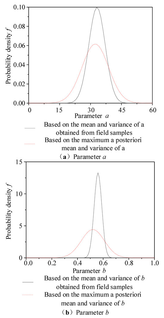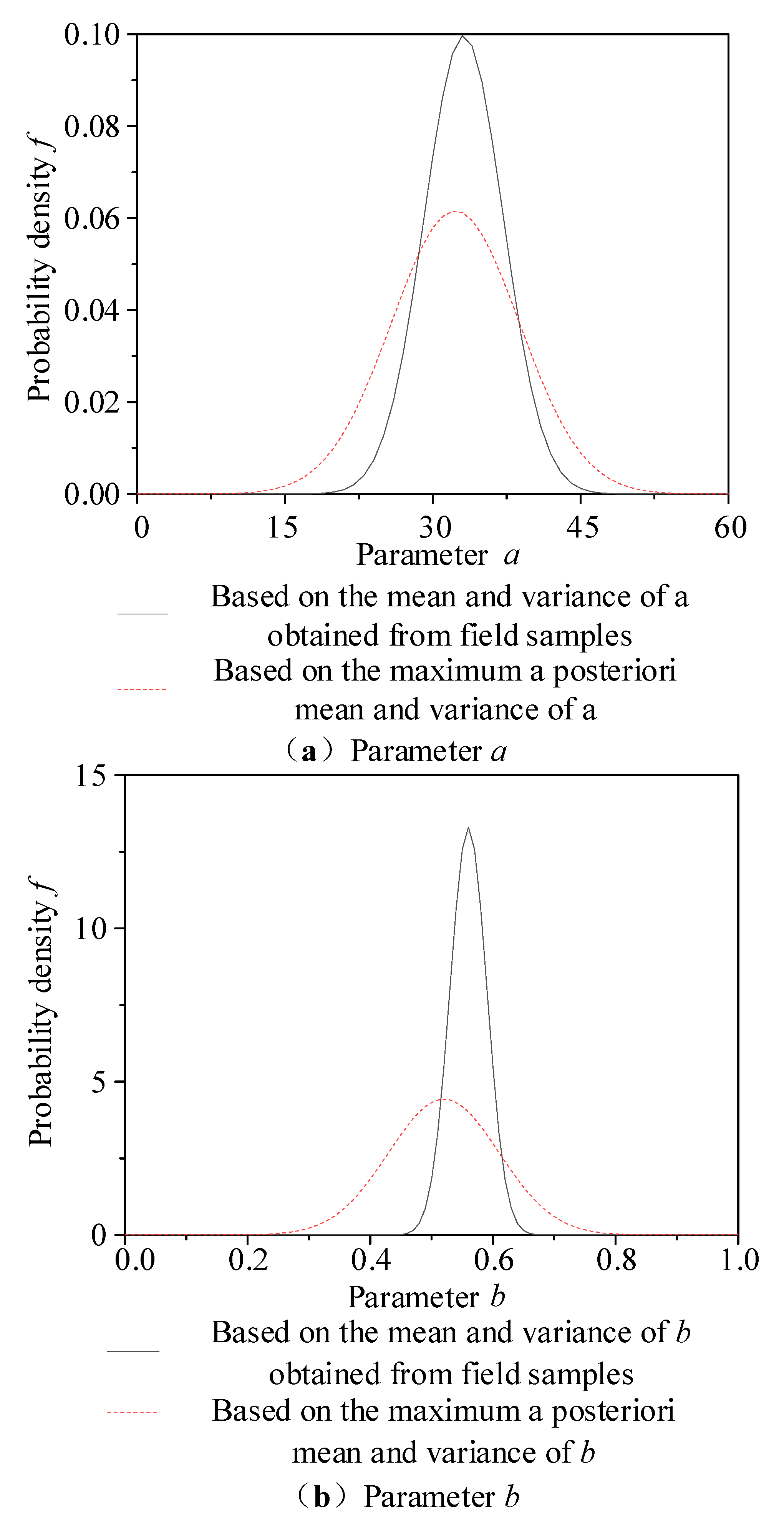 - A power function regression equation was established to relate Vs and h. Prior distributions for the mean and variance of parameters a and b in the power function were derived from six sets of historical data. The prior means of a and b conform to a normal distribution, while their prior variances conform to an inverse gamma distribution.