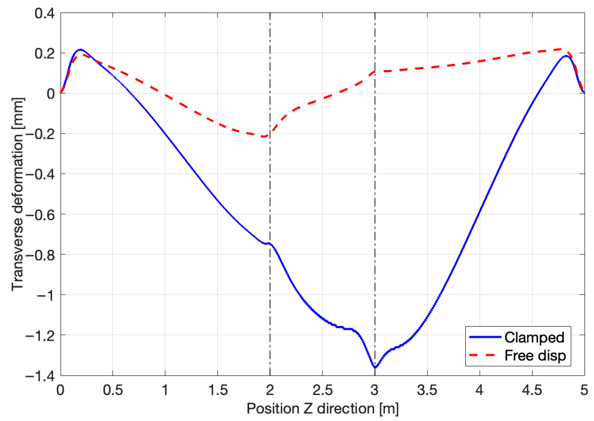 - The results in both distortion and residual stress indicate that the free displacement conditions yield better performance. Overall distortion increases by 8%, while the vertical and transverse components decrease by an average of 76%.