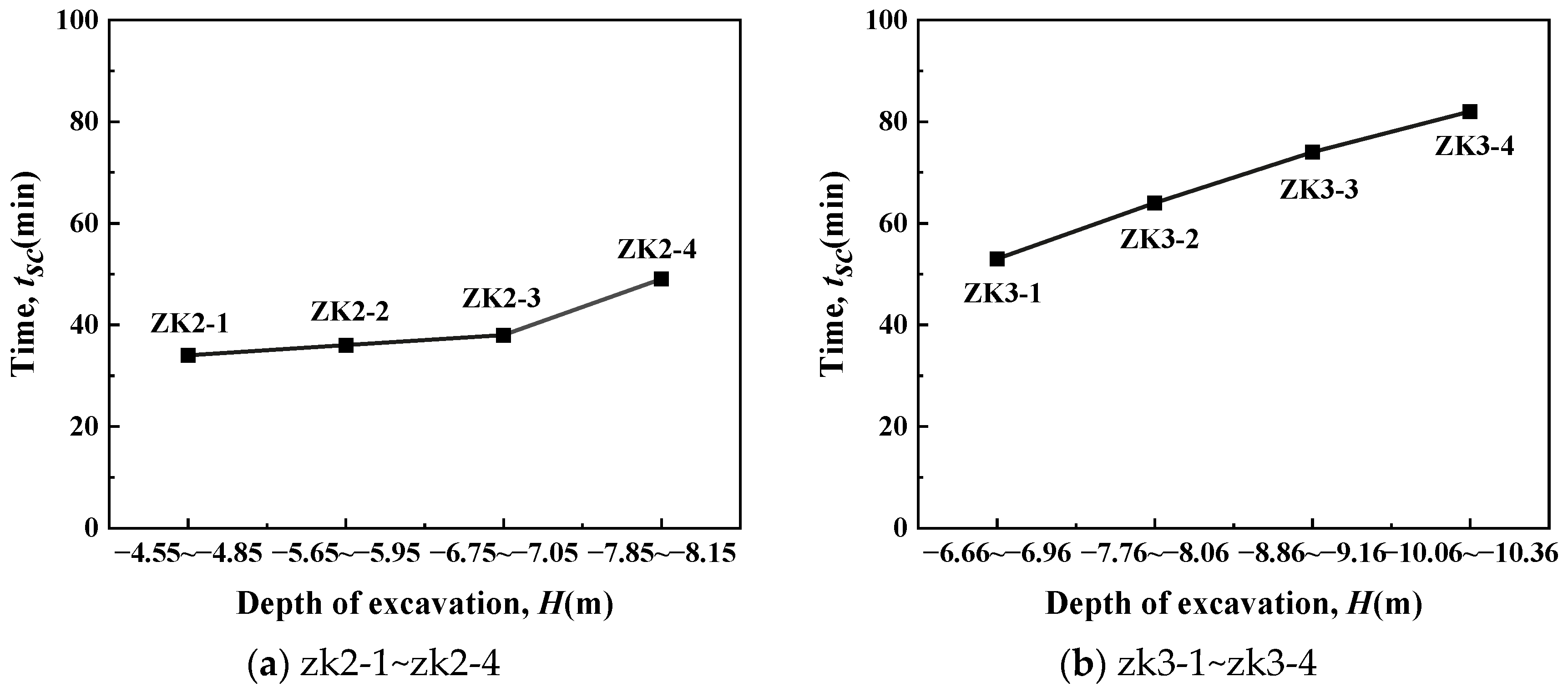 - Sun, M.-Q.; Wang, Q.; Niu, C.-C.; Sun, T. Consolidation and Creep Theory Based on Terzaghi Consolidation Theory and Empirical Creep Model. J. Northeast. Univ. (Nat. Sci.) 2016, 37, 1188. [Google Scholar] [CrossRef]
