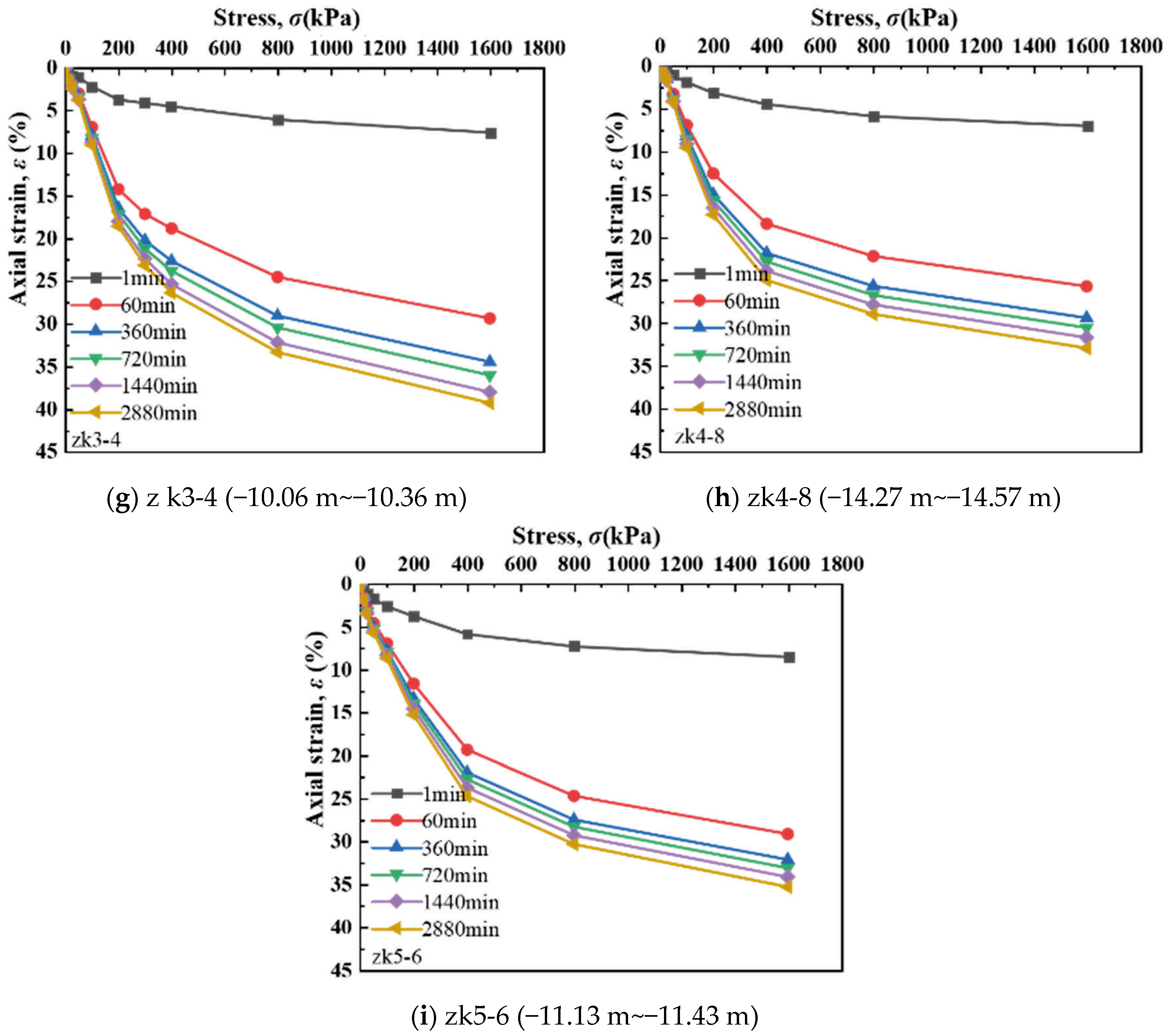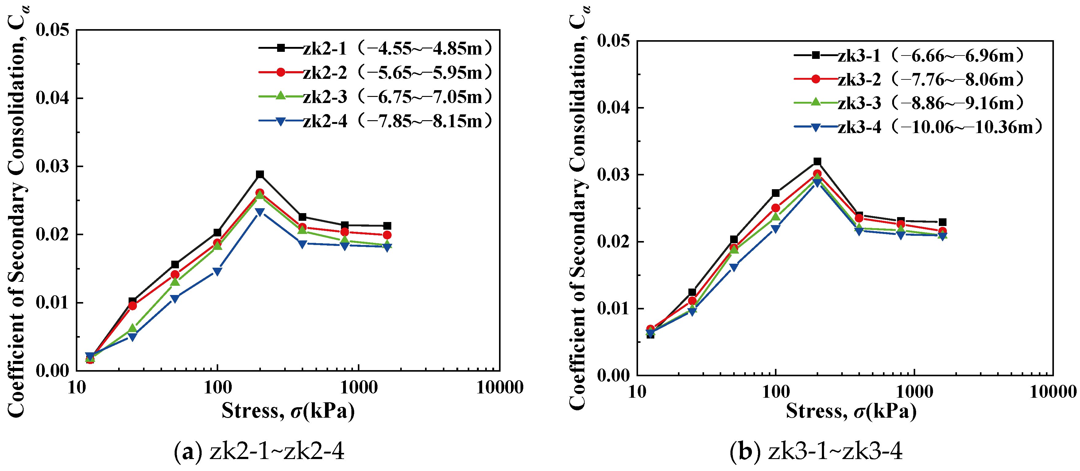 - Shao, G.-H.; Liu, S.-Y. Research on Secondary Consolidation of Structural Marine Clays. Rock Soil Mech. 2013, 29, 2057–2062. [Google Scholar]
