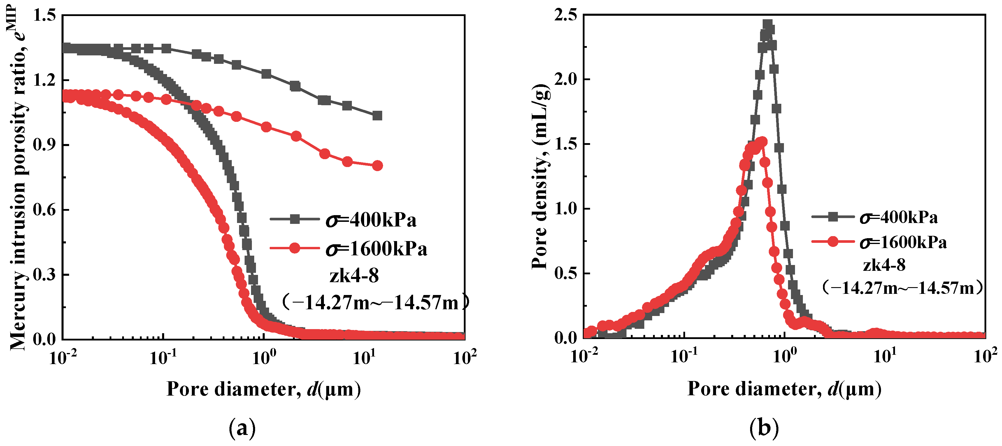 - Lapierre, C.; Leroueil, S.; Locat, J. Mercury Intrusion and Permeability of Louiseville Clay. Can. Geotech. J. 1990, 27, 761–773. [Google Scholar] [CrossRef]