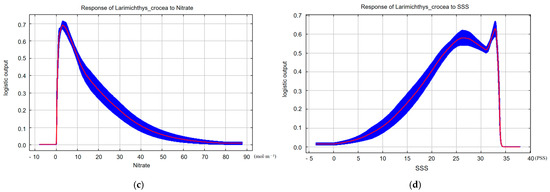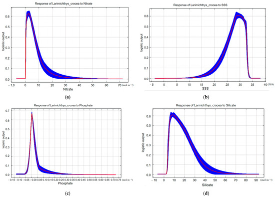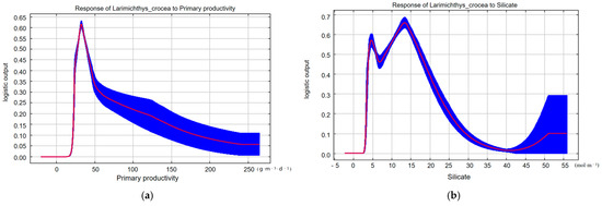 - Yang, W.; Hu, W.; Chen, B.; Tan, H. The potential distribution of main Sciaenidae species in coastal China based on MaxEnt model. Chin. J. Ecol. 2022, 41, 1825–1834. (In Chinese) [Google Scholar] [CrossRef]
