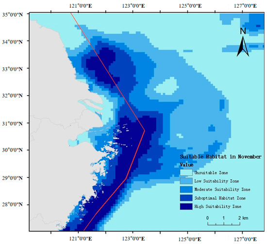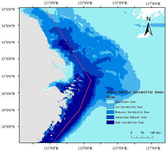 APA StyleYu, S., Meng, W., Zhang, H., Ge, H., Wu, L., Qu, Y., Zhang, Q., & Zhou, Y. (2025). Ecological Suitability Assessment of Larimichthys crocea in Coastal Waters of the East China Sea and Yellow Sea Based on MaxEnt Modeling. Journal of Marine Science and Engineering, 13(10), 1945. https://doi.org/10.3390/jmse13101945