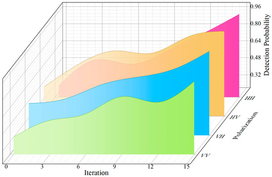 - Stable detection performance is achieved across multiple polarization modes. This approach overcomes the detection limitations of traditional methods under low signal-to-noise ratio conditions. Experimental results demonstrate that on the IPIX dataset, the average detection rate across four polarization modes reaches 88.3%, with a peak of 91.5%, showcasing strong robustness and reliability.