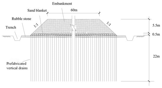 - Zhang, L.; Jin, H.; Lv, Y.; Wang, B.; Jia, Z.; Hou, F.; Fang, C.; Wang, L.; Jin, D. Improvements in Vacuum-Surcharge Preloading Combined with Electro-Osmotic Consolidation on Soft Clayey Soil with High Water Content. Geotext. Geomembr. 2025, 53, 41–54. [Google Scholar] [CrossRef]