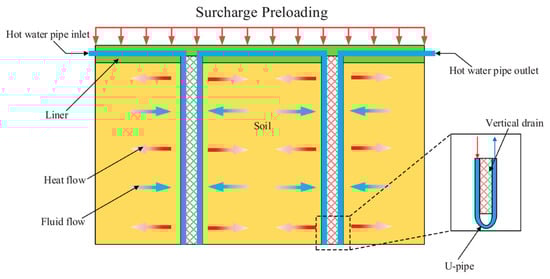 - Deng, Y.; Han, Y.; Zheng, L.; Zheng, R.; Yao, Y. Model Test Research on Preloading Combined with Solar Thermal Drainage Consolidation Technology. J. Disaster Prev. Mitig. Eng. 2022, 42, 905–912. (In Chinese) [Google Scholar] [CrossRef]