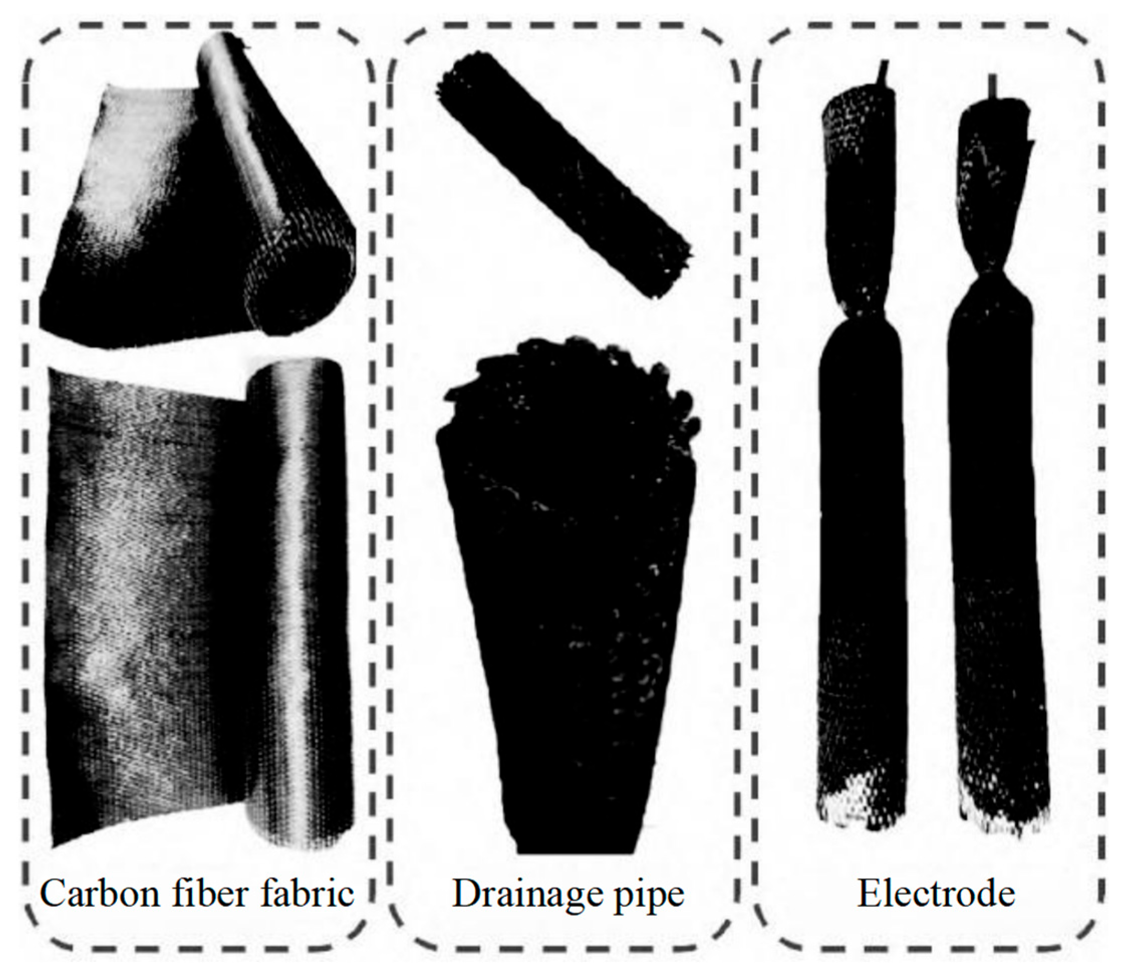 - Ling, J.; Li, X.; Qian, J.; Li, X. Performance Comparison of Different Electrode Materials for Electro-Osmosis Treatment on Subgrade Soil. Constr. Build. Mater. 2021, 271, 121590. [Google Scholar] [CrossRef]