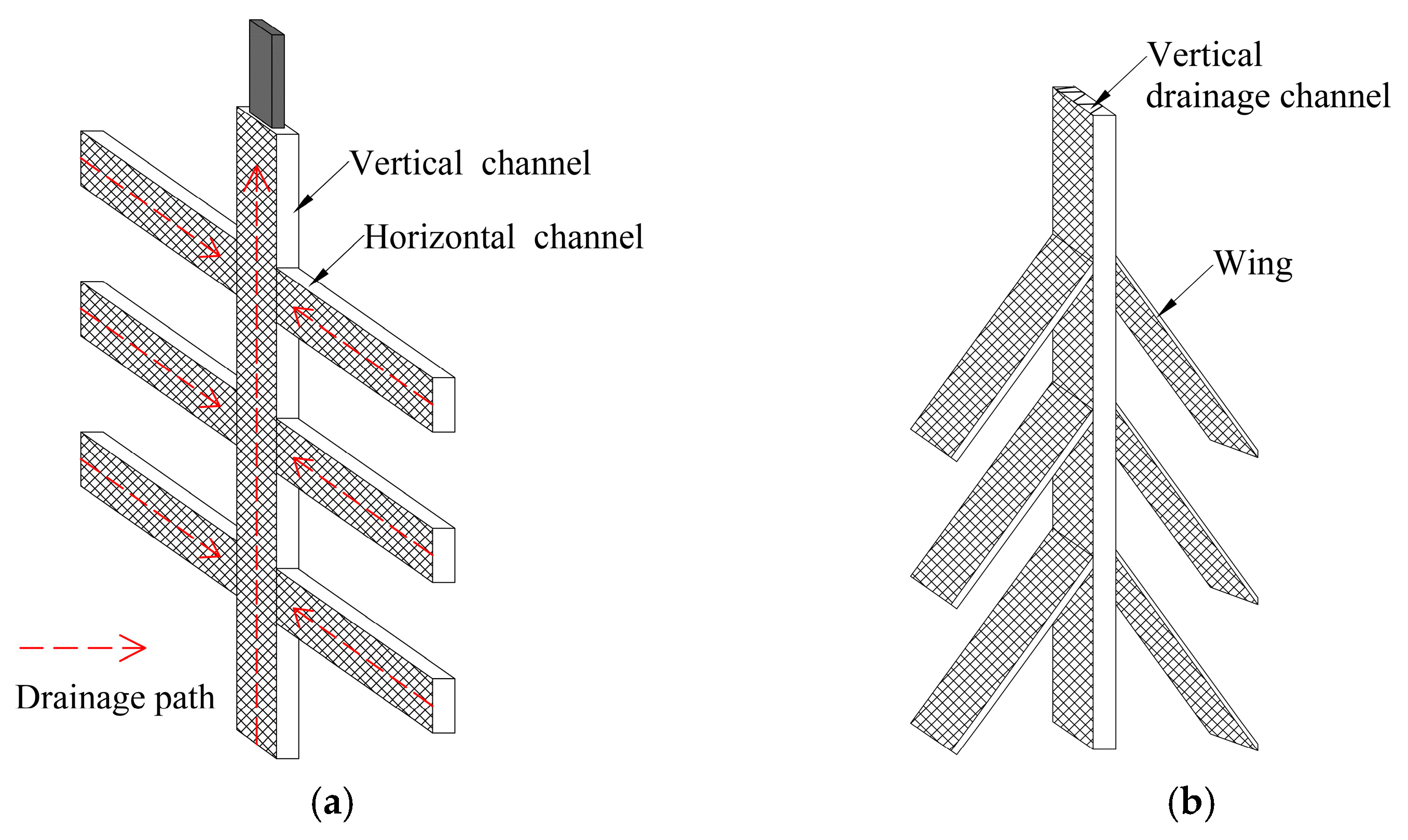 - Fu, H.; Chai, J. Performance of a Winged PVD (WPVD) for Vacuum Consolidation of Soft Clayey Deposits. Transp. Geotech. 2020, 24, 100370. [Google Scholar] [CrossRef]