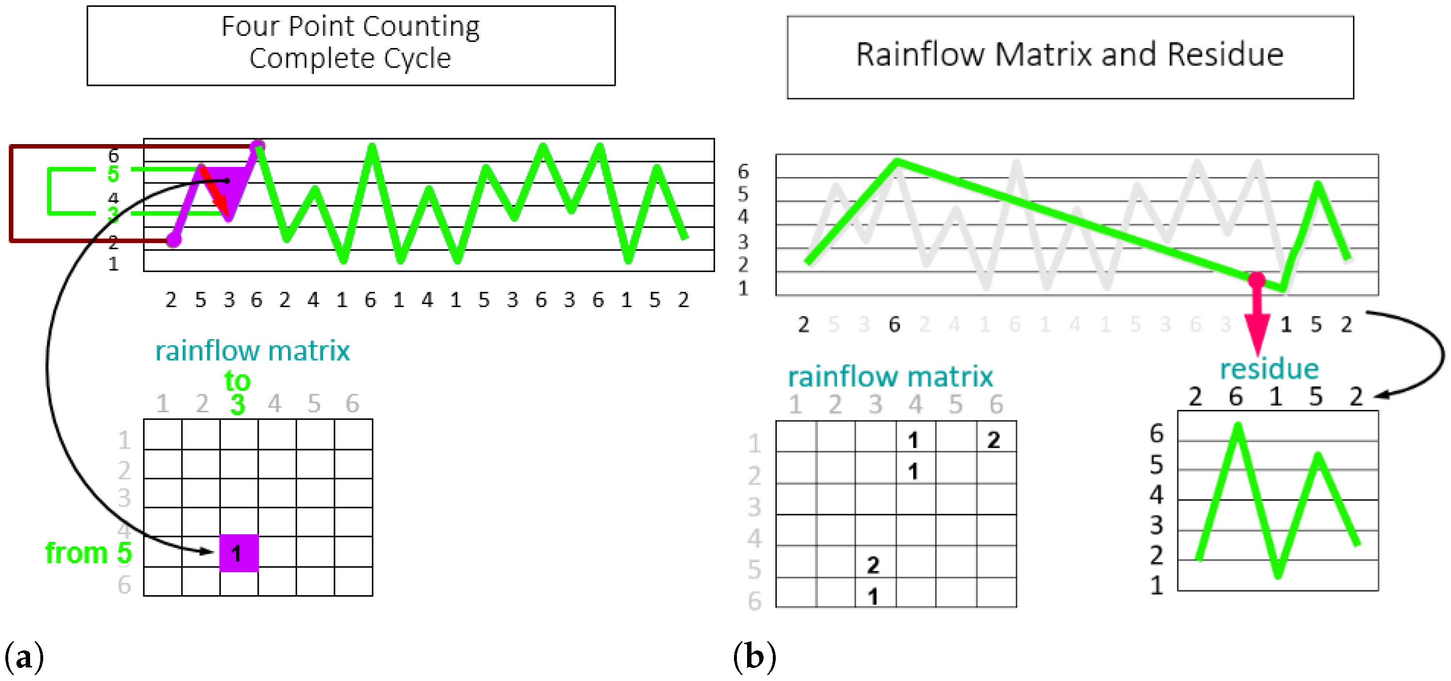 - ASTM E1049-85(2017); Standard Practices for Cycle Counting in Fatigue Analysis. ASTM: West Conshohocken, PA, USA, 2017. [CrossRef]