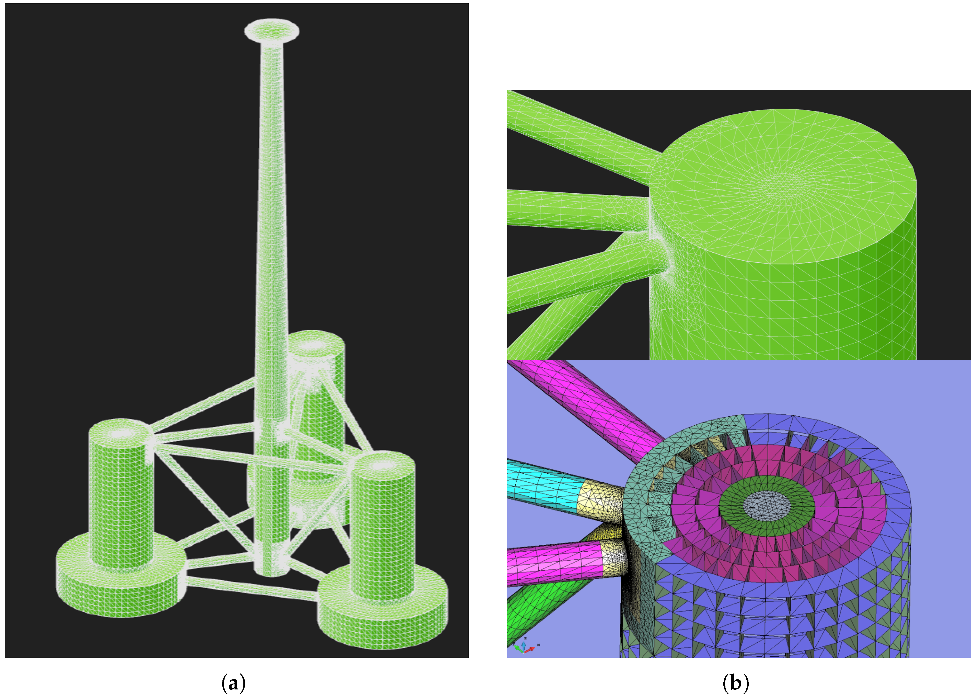 - Servan-Camas, B.; Gutierrez-Romero, J.E.; Garcia-Espinosa, J. A Time-Domain Second-Order FEM Model for the Wave Diffraction-Radiation Problem. Validation with a Semisubmersible Platform. Mar. Struct. 2018, 58, 278–300. [Google Scholar] [CrossRef]
