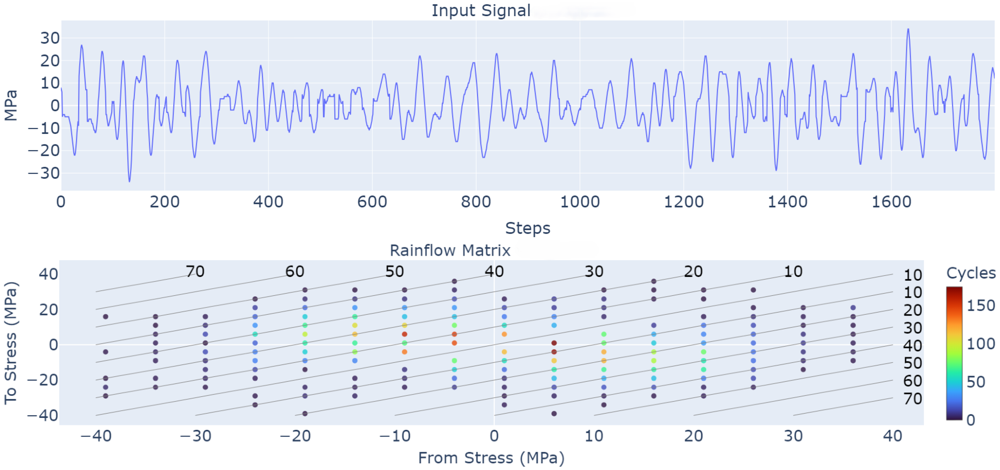 - Siemens. Rainflow Counting Method. 2019. Available online: https://community.sw.siemens.com/s/article/rainflow-counting (accessed on 10 September 2025).