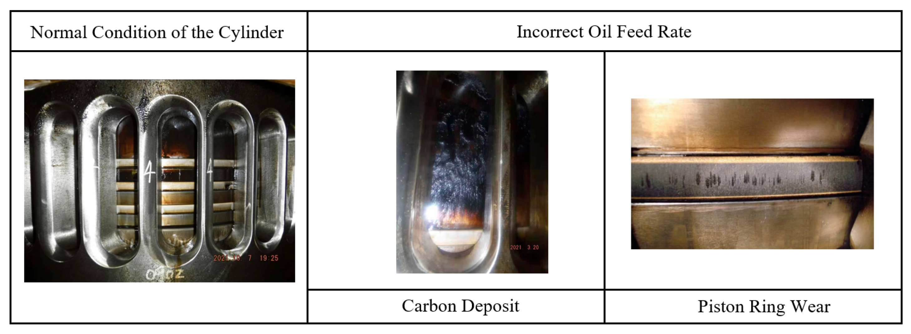 Figure 18, top left). In the context of operational constraints and limited maintenance window, determining the appropriate adjustment of the lubrication rate based on historical data became a key decision-making factor for optimizing cylinder lubrication performance and preventing further damage.