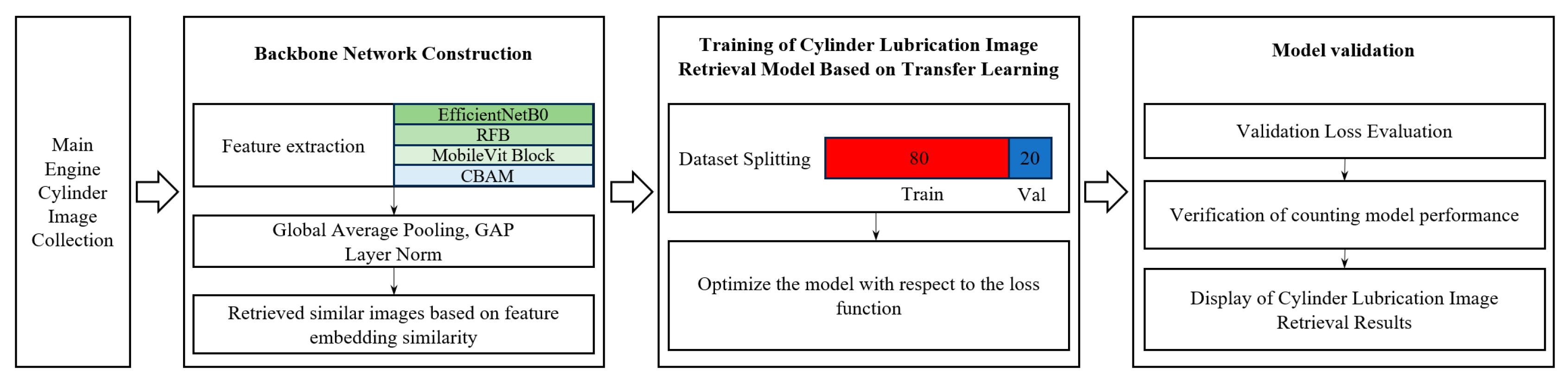 This study proposes a high-accuracy, lightweight image retrieval model tailored for marine engine cylinders. The overall network architecture is illustrated in