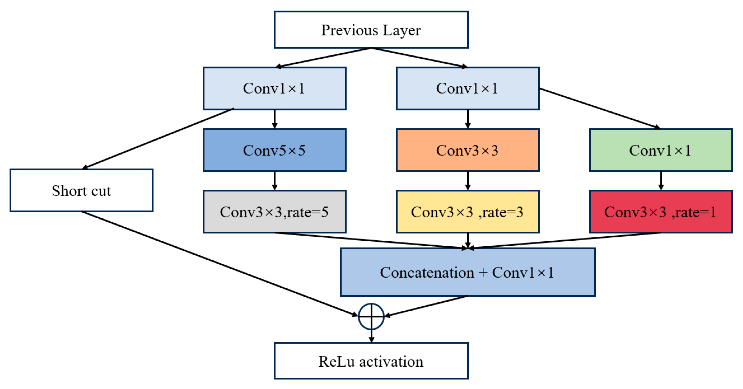 To enhance the model’s multi-scale perception and improve local structure representation, a Receptive Field Block (RFB) is introduced following the backbone. RFB employs parallel convolutional paths with varying receptive field sizes to effectively capture features at different spatial scales, improving the network’s ability to represent fine structural details such as scratches and carbon deposit edges [