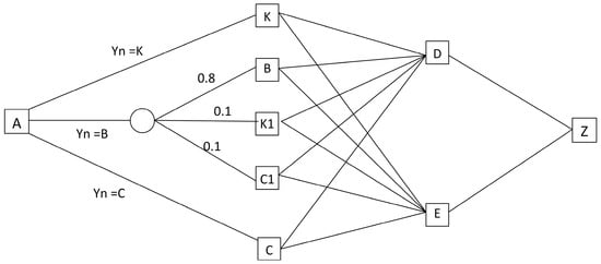 Structure of the examined transportation network under conditions of uncertainty.