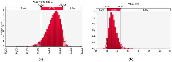 (a) Distribution of CO2 eq. for AKEZ. (b) Distribution of time for AKEZ.