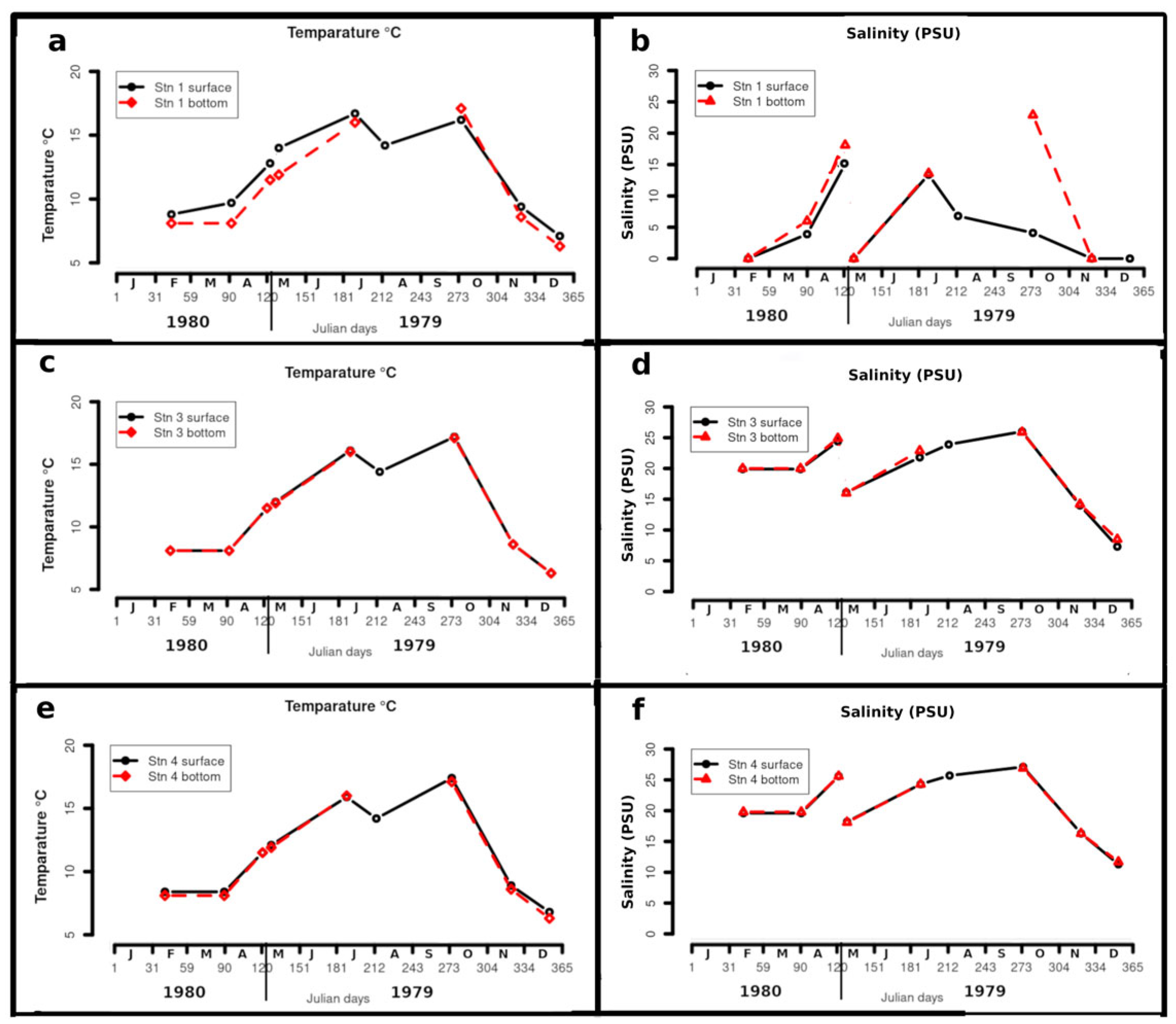 | T | Water temperature (mean of surface and bottom) | No transform | Sum | Summer solstice component (Winter component is the negative of this) | None |