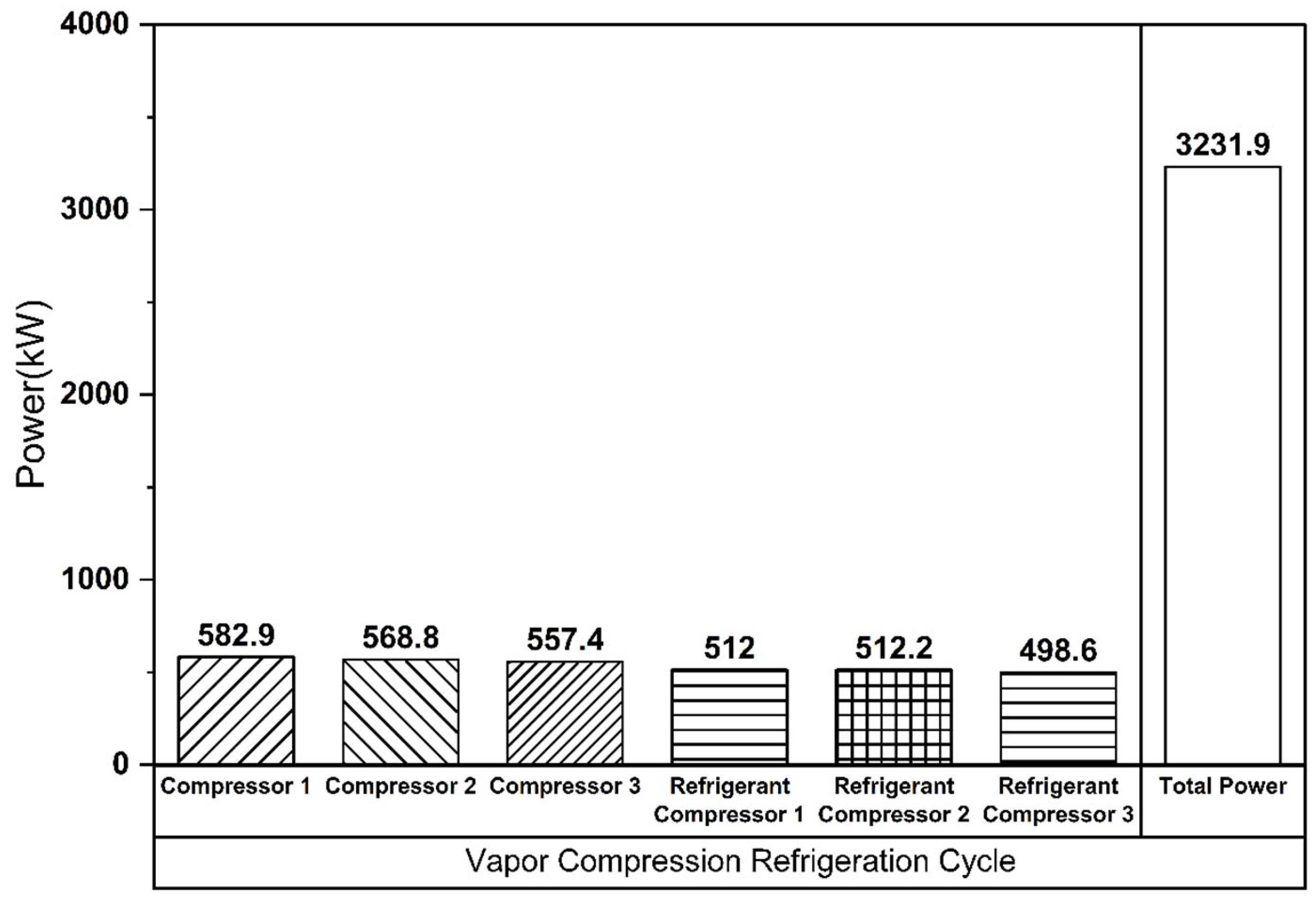 - Refrigerant side inlet and outlet pressures in the vapor compression refrigeration cycle heat exchanger: 101.3 kPa and 100 kPa, respectively (vacuum condition considered);