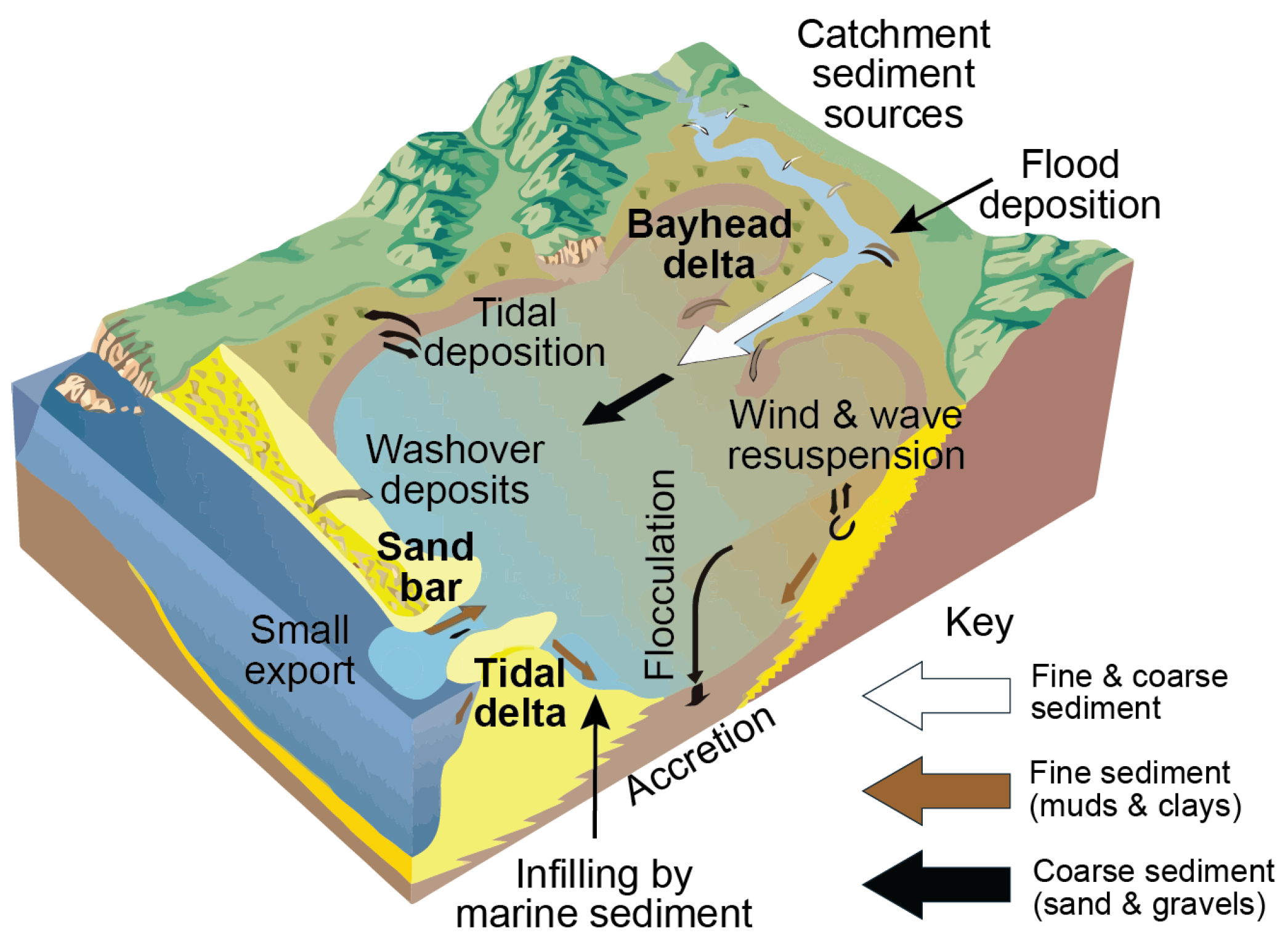 - Rich, A.; Keller, E.A. A hydrologic and geomorphic model of estuary breaching and closure. Geomorphology 2013, 191, 64–74. [Google Scholar] [CrossRef]