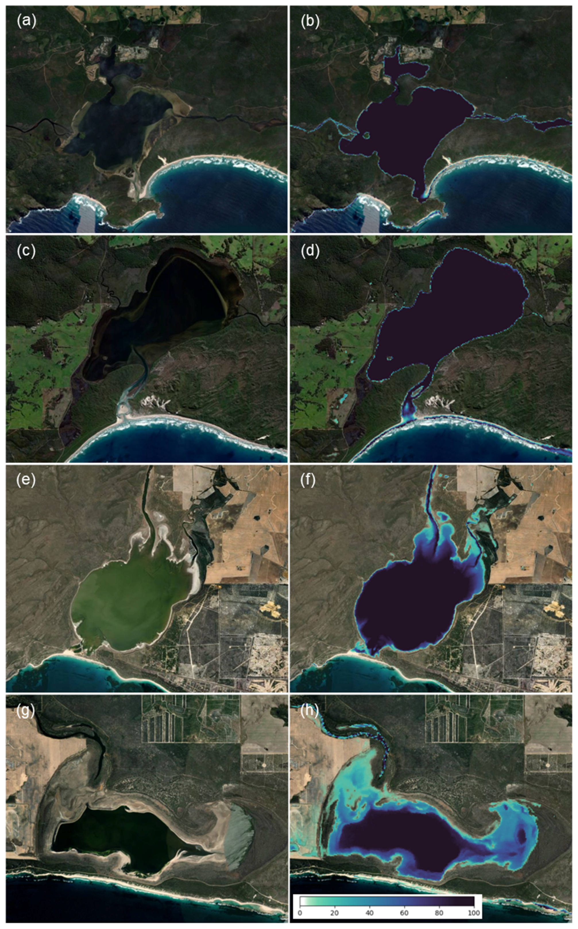 - Payne, S.A.R.; Alvarez, K.; Bruce, M.; Darling, R.; Gunnerson, A.; Ly, R.; Stonebrook, S.; Carcelen, E.; Holt, B.; Chapman, B.; et al. Bar-built estuary breach detection with remote sensing: An automated tool to inform management practices. Estuaries Coasts 2025, 48, 119. [Google Scholar] [CrossRef]