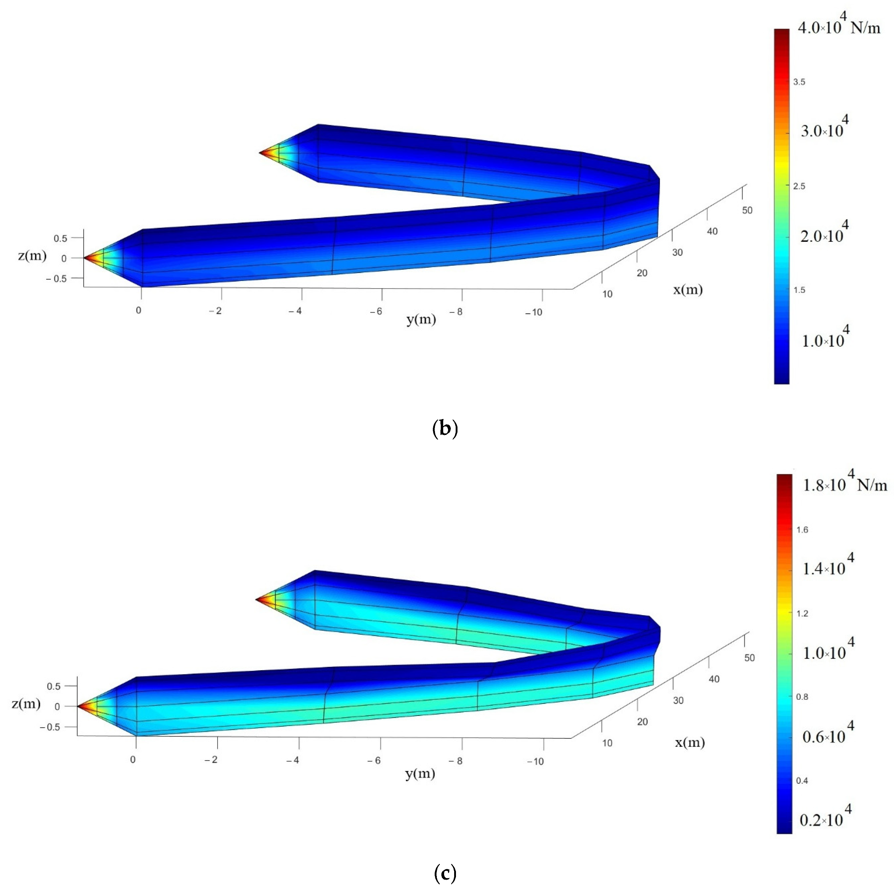29], which depends on the geometric curvature and particularly on the initial parabola depth of the boom section in the x-y plane. The deeper the parabola, the lower the x-component’s tension.