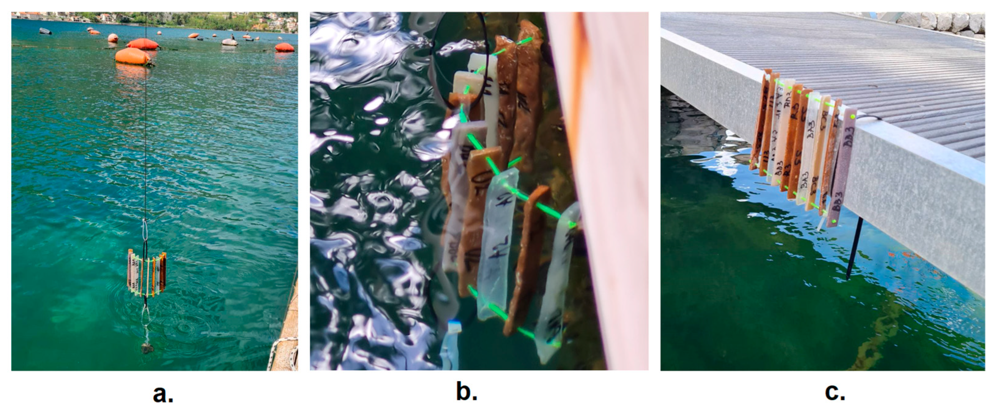 - Fragassa, C.; Mattiello, S.; Fronduti, M.; Del Gobbo, J.; Gagic, R.; Santulli, C. Prevention of biofouling due to water absorption of natural fiber composites in the aquatic environment: A critical review. J. Compos. Sci. 2024, 8, 532. [Google Scholar] [CrossRef]