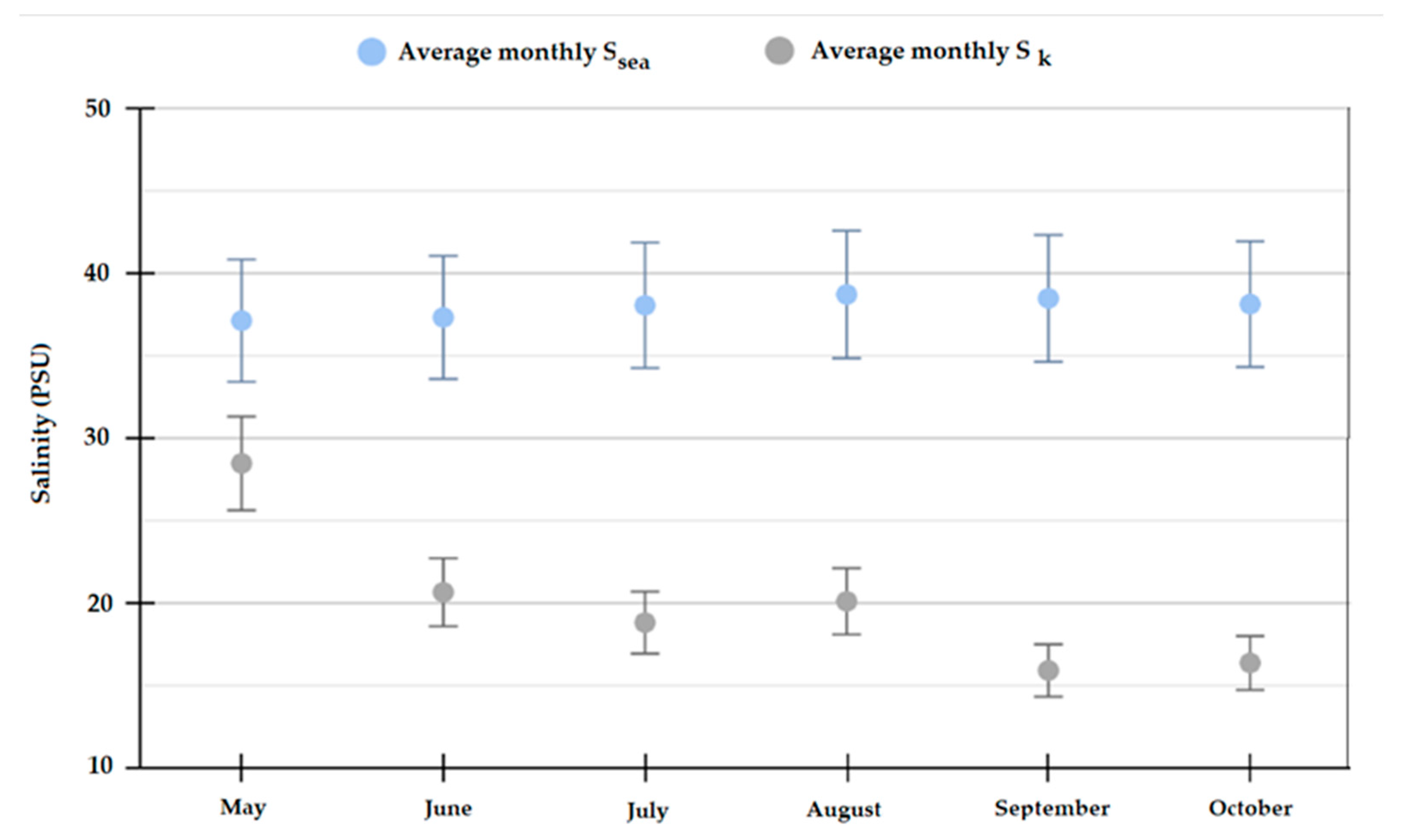 - Dolenec, T.; Lojen, S.; Dolenec, M.; Lambaša, Ž.; Dobnikar, M.; Rogan, N. 15 N and 13 C Enrichment in Balanus perforatus: Tracers of Municipal Particulate Waste in the Murter Sea (Central Adriatic, Croatia). Acta Chim. Slov. 2006, 53, 469–476. [Google Scholar]