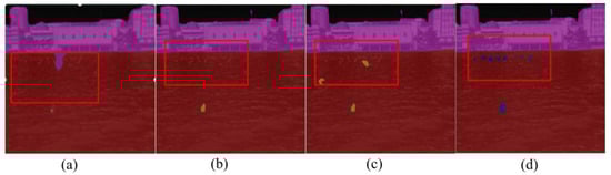 The ablation experiments are carried out on the MASSMIND dataset, and the results are shown in Figure 16, which shows that after gradually adding the attention proposed in this paper, the segmentation effect of the USVS-Net is improving, especially for the small obstacles in the water showing excellent segmentation effect.
