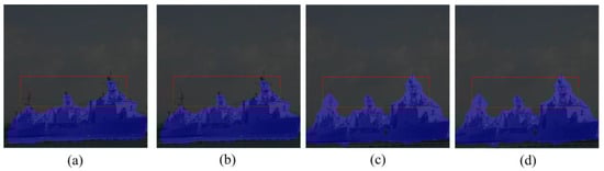 Next, we visualize the effects of the proposed modules. The visualization experiments are presented in Figure 15. As shown in Figure 15a, the baseline network without the GCSA and MECS modules lacks sufficient spatial information processing capability, resulting in poor contour recognition of mountain ranges and frequent pixel misclassifications among the sky, ocean, and mountains. In Figure 15b, the GCSA module enhances mountain range recognition by strengthening pixel correlations through multi-scale interactions and reducing spatial information loss. It accurately reclassifies many pixels previously misidentified as sky or seawater. In Figure 15c, the MECS module improves the segmentation of edges and fine details by leveraging global statistical features and multi-scale representative information to distinguish frequency-domain characteristics, producing smoother and more natural mountain contours. Finally, Figure 15d illustrates the complete USVS-Net, where the synergy between GCSA and MECS significantly enhances feature resolution. This dual-module mechanism enables intelligent cross-channel information selection and captures spatial features from fine details to global structures, achieving accurate pixel-level recognition of mountainous terrain and continuous geological boundaries, demonstrating strong performance in complex terrain analysis and boundary reconstruction.