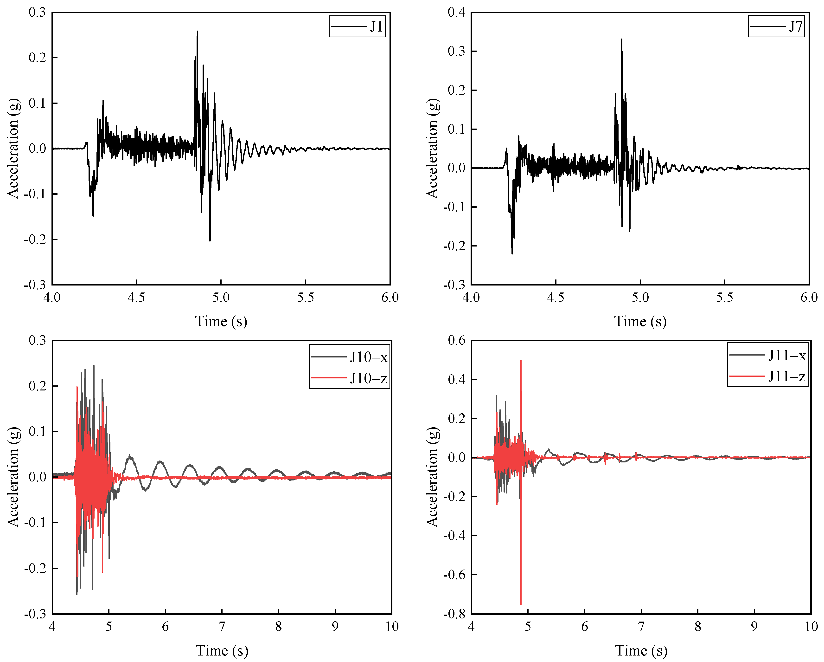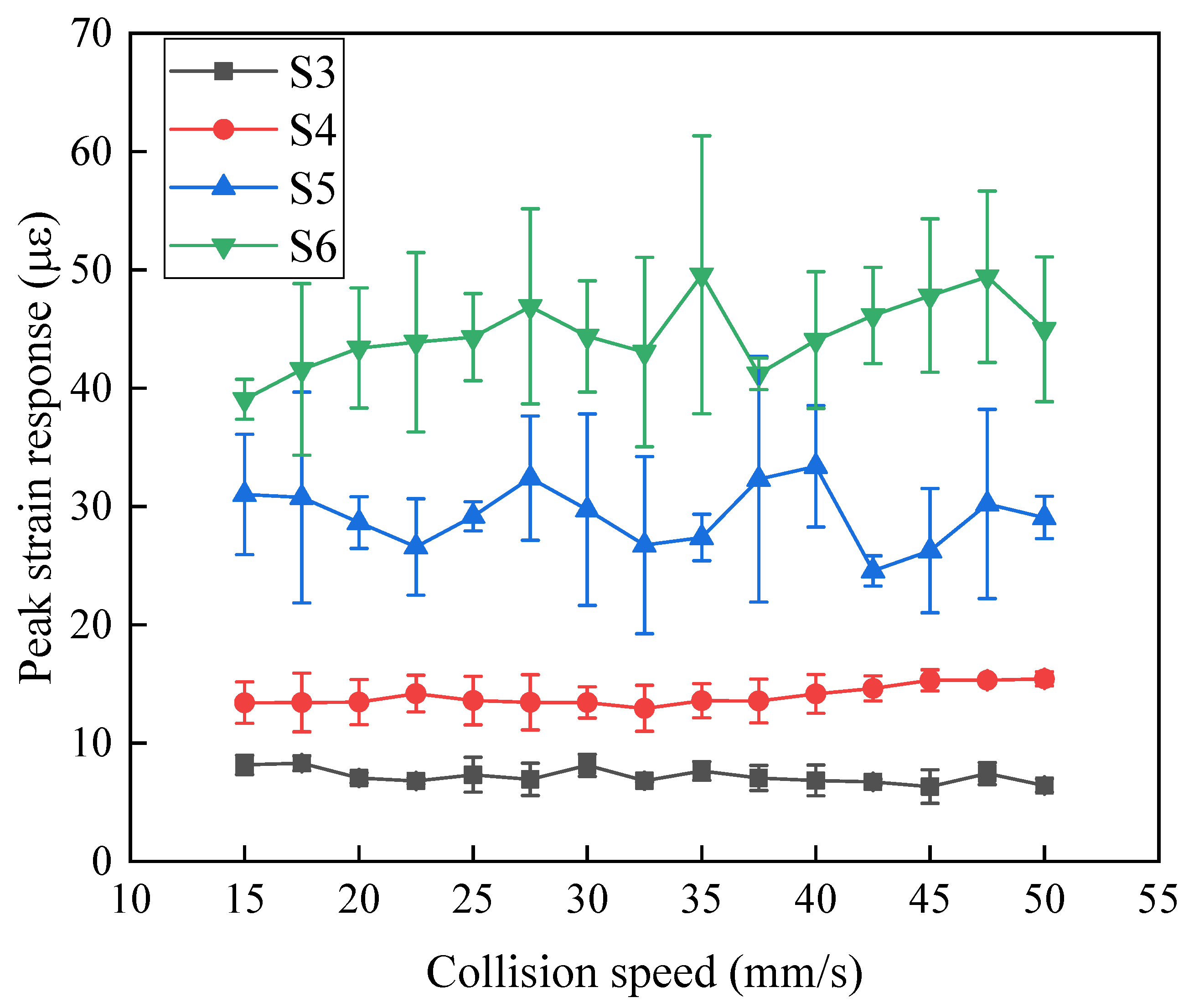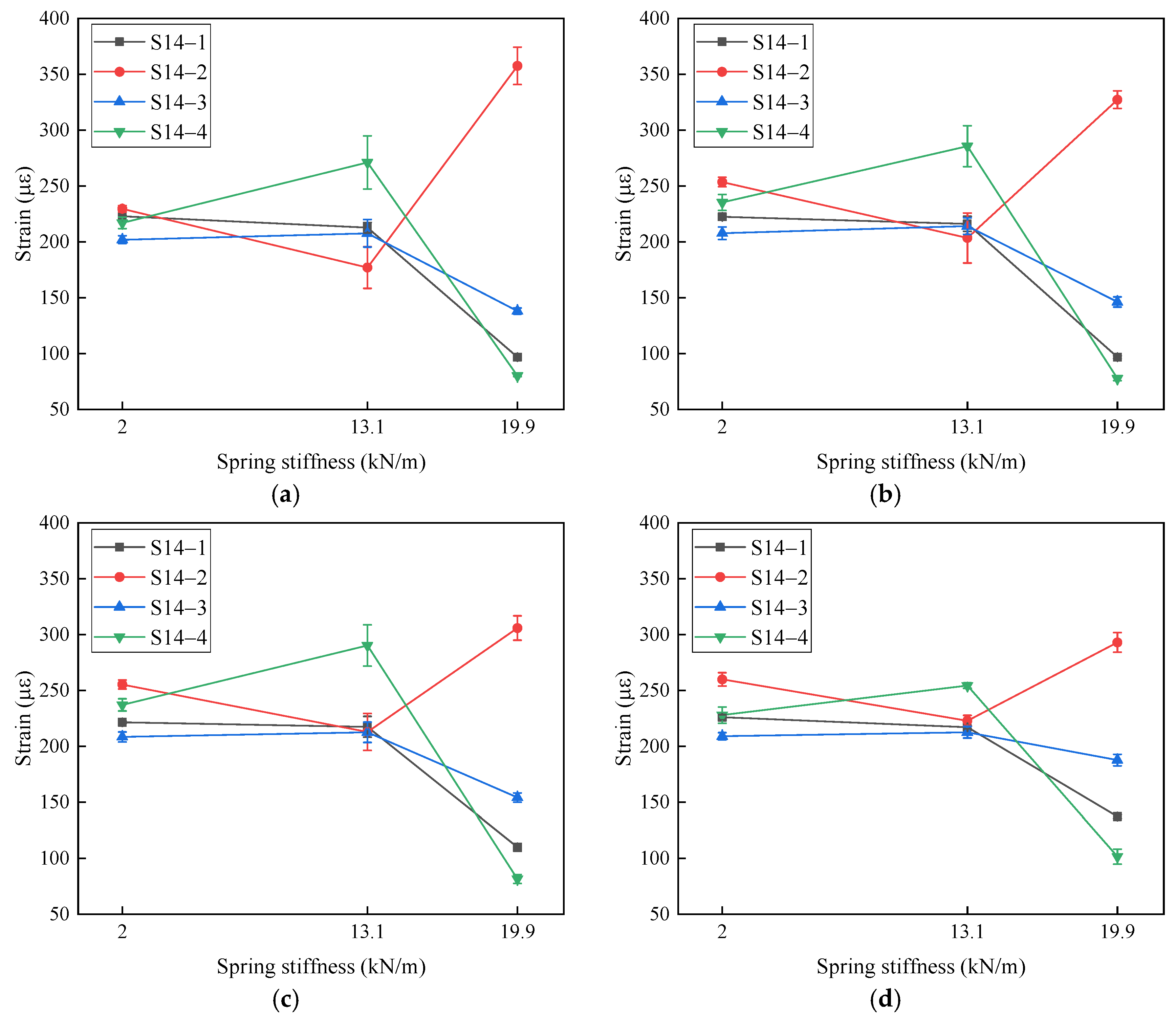 | Case No. | Peak Strain Response (με) | |||