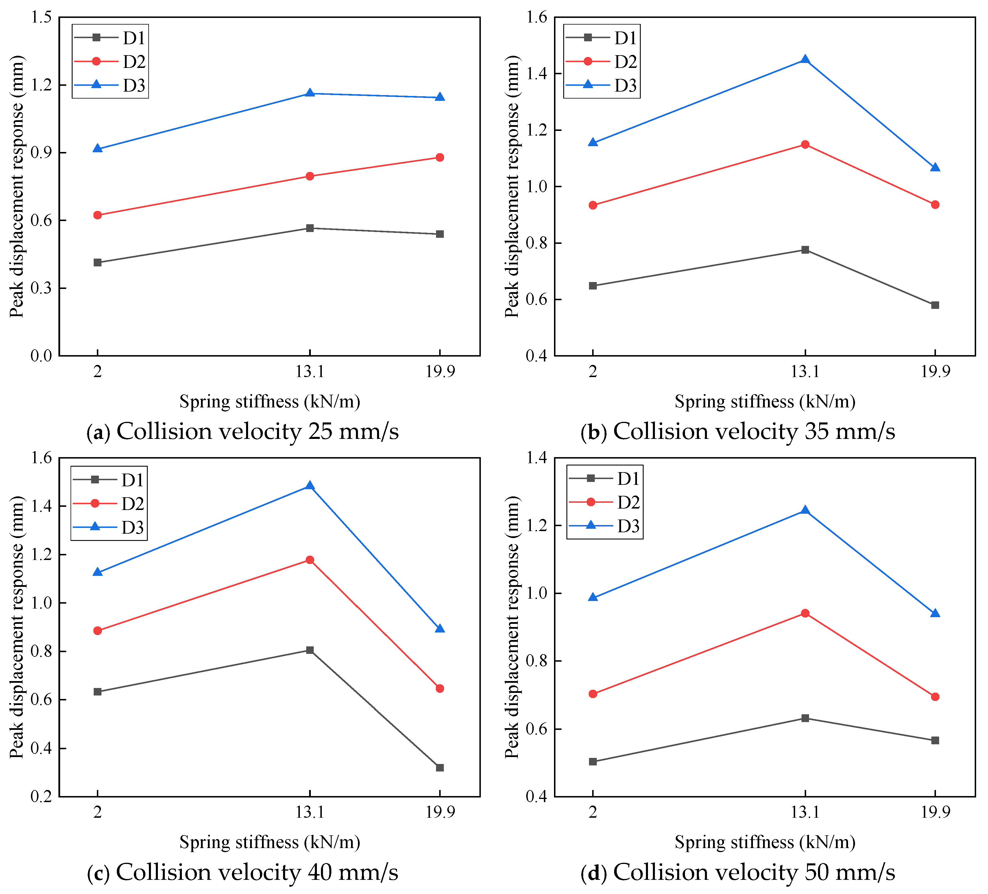 | Case No. | Vertical Stiffness of the LMU (kN/m) | Collision Velocity (mm/s) | |