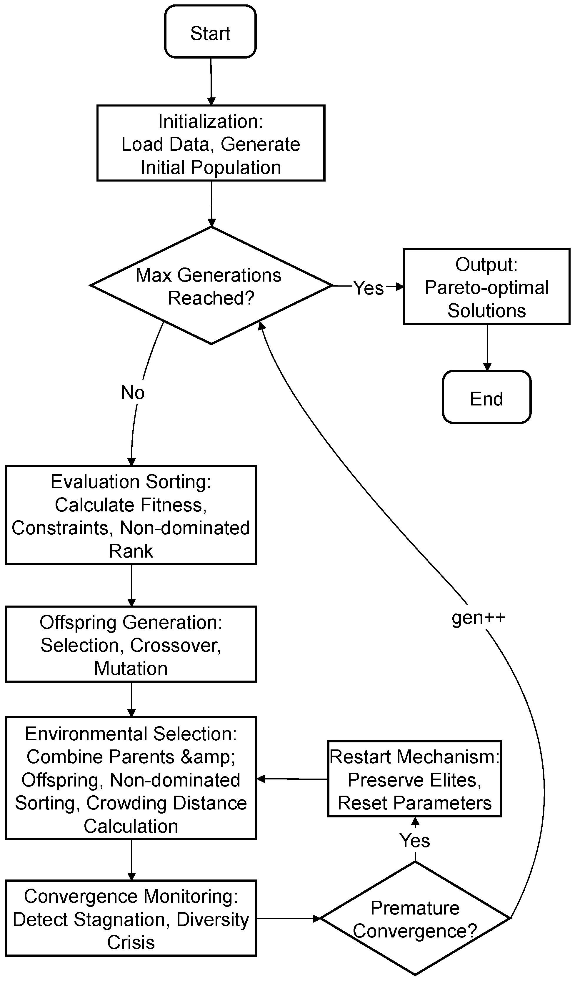 - Ma, H.; Zhang, Y.; Sun, S.; Liu, T.; Shan, Y. A comprehensive survey on NSGA-II for multi-objective optimization and applications. Artif. Intell. Rev. 2023, 56, 15217–15270. [Google Scholar] [CrossRef]