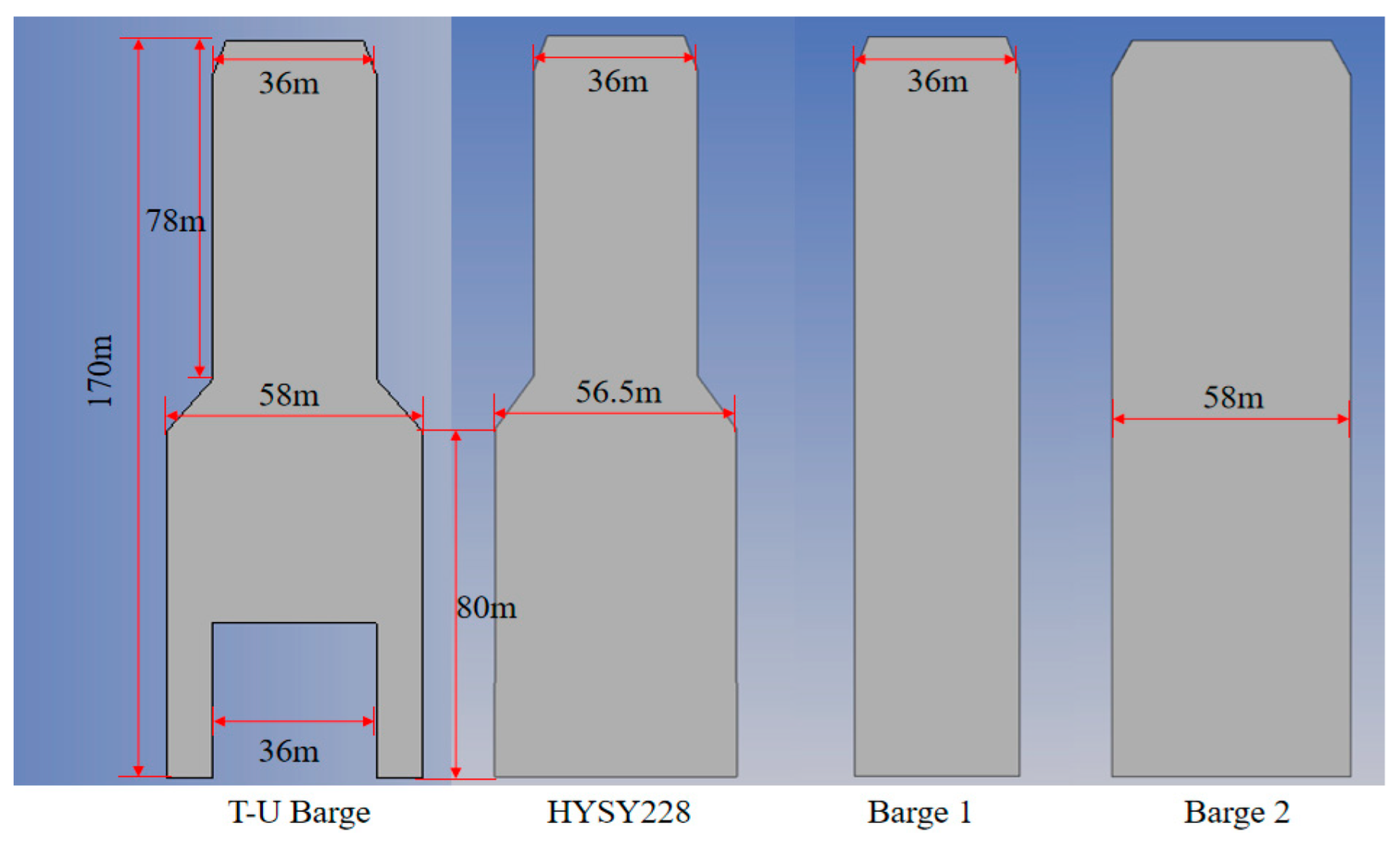 The U-shaped slot at the stern of the T–U-shaped barge is designed in such a way that the moon pool structure can induce hydrodynamic resonance phenomena. Therefore, it is necessary to correct the wave surface within the moon pool. In this study, an artificial damping lid method is employed to modify the free surface of the U-shaped slot in the barge, thereby obtaining more accurate hydrodynamic coefficients.