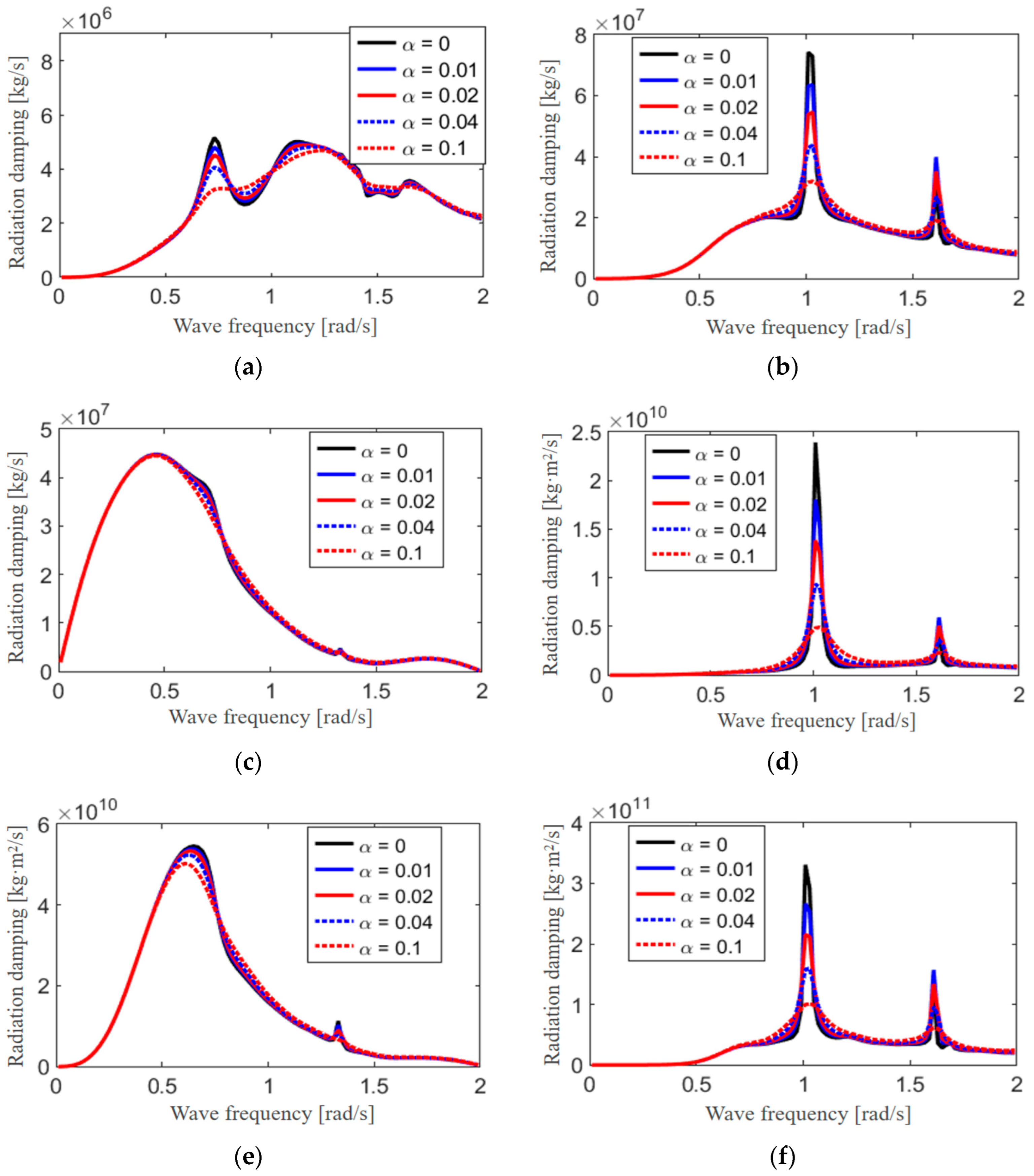 Figure 11 show the added mass, radiation damping, and partial RAO of the barge under different damping coefficients. As shown in