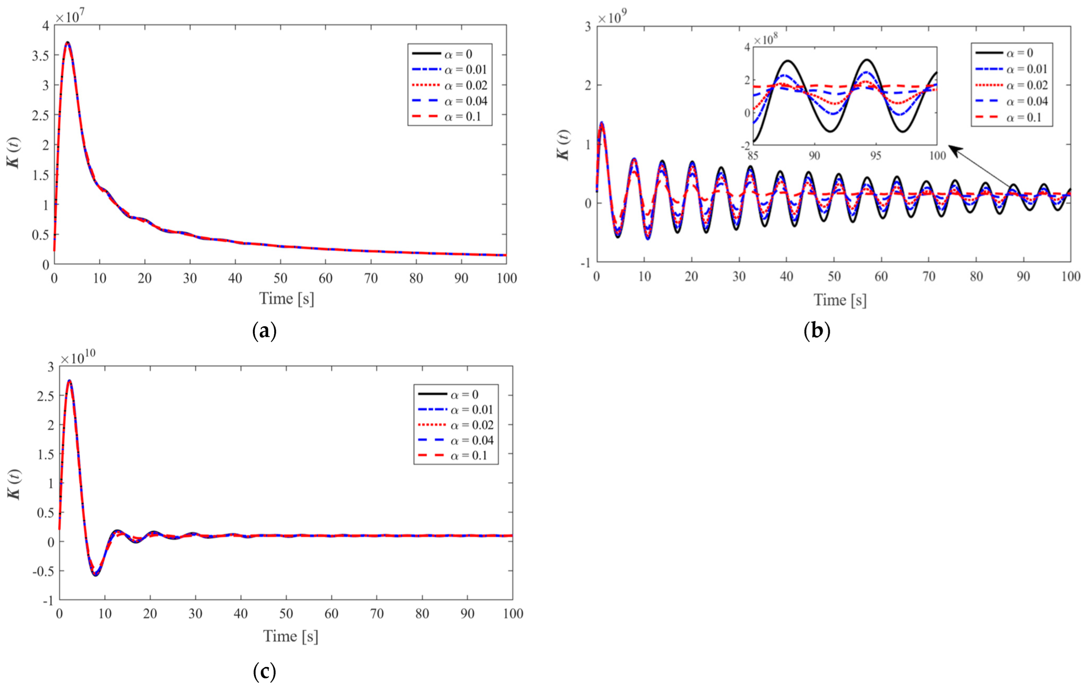 Figure 12a–c show the impulse response functions in the heave, roll, and pitch directions, respectively. From the figures, it can be observed that although the RAO curves exhibit significant changes with varying damping coefficients in the heave and pitch directions, the impulse response functions in these directions are not sensitive to the damping coefficient. Conversely, in the roll direction, although the effect of the damping coefficient on the RAO is minimal, the impulse response function exhibits strong oscillations at