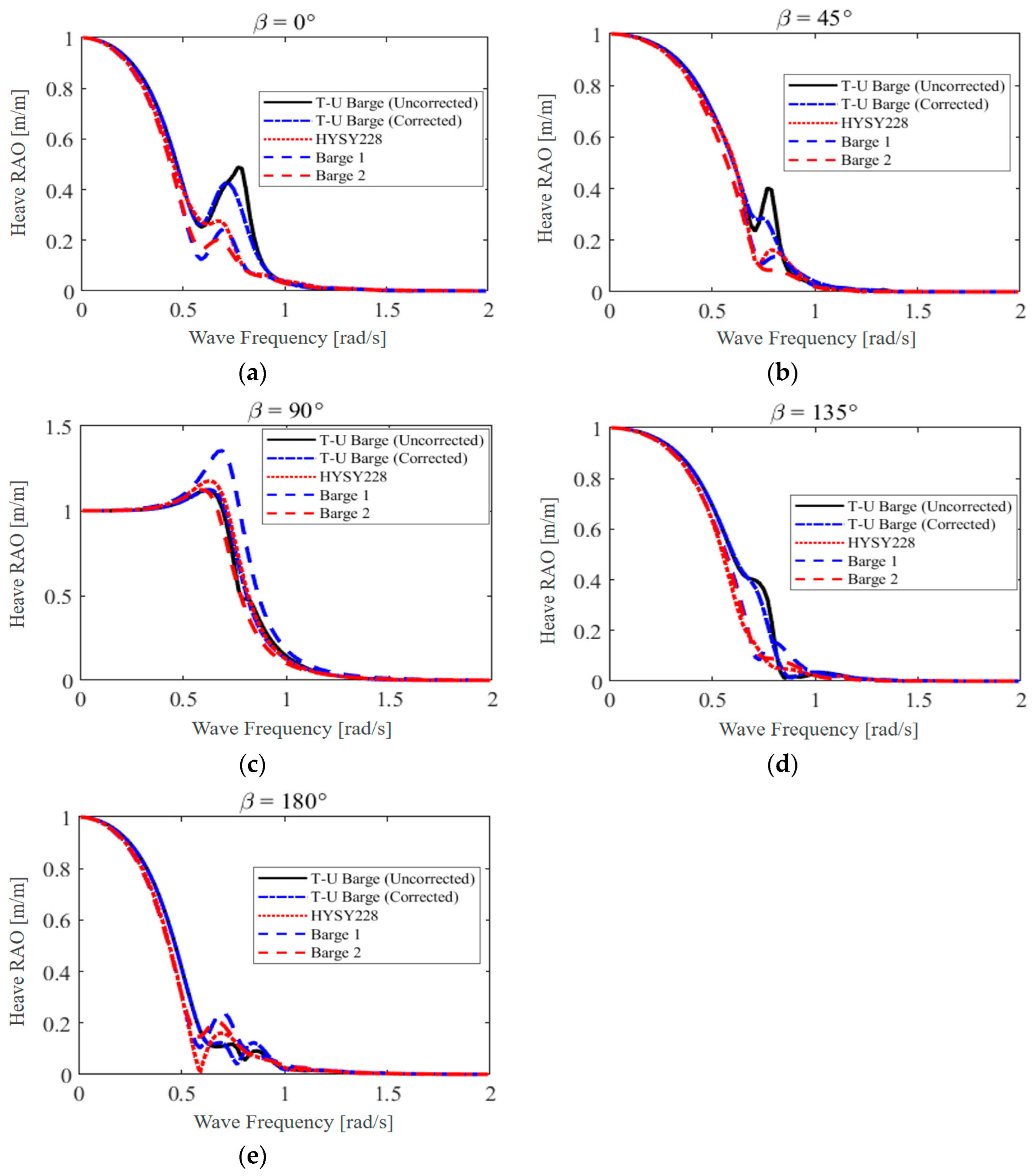 42]. Therefore, for the proposed novel T–U-shaped barge, damping corrections must be applied prior to conducting frequency-domain hydrodynamic analysis and time-domain simulations.