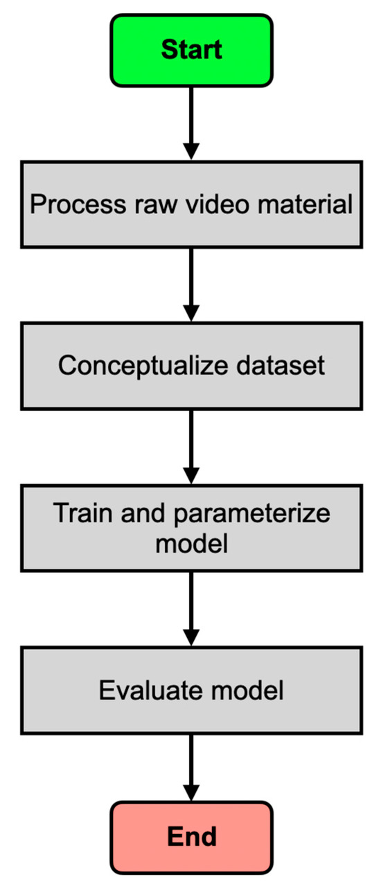 In the last step, the images that will be part of the dataset were selected. The selection was performed randomly from the pool of extracted frames. This measure ensured that all segments of the videos were represented in the dataset to increase diversity and improve the model’s robustness.