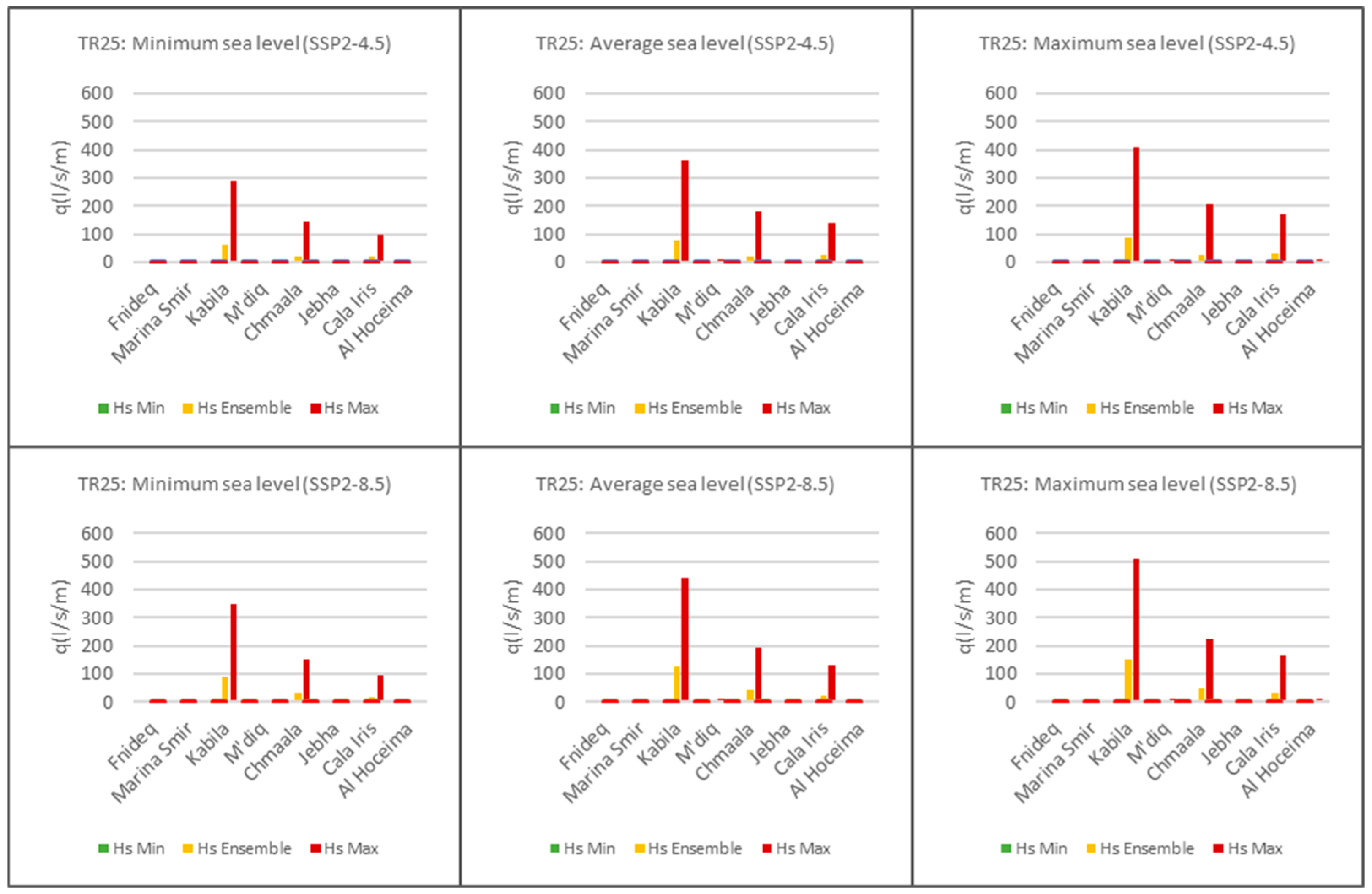 - High-impact ports: Kabila, Chmaala, and Cala Iris. For the upper Hs band, these exceed 100 L/s/m.