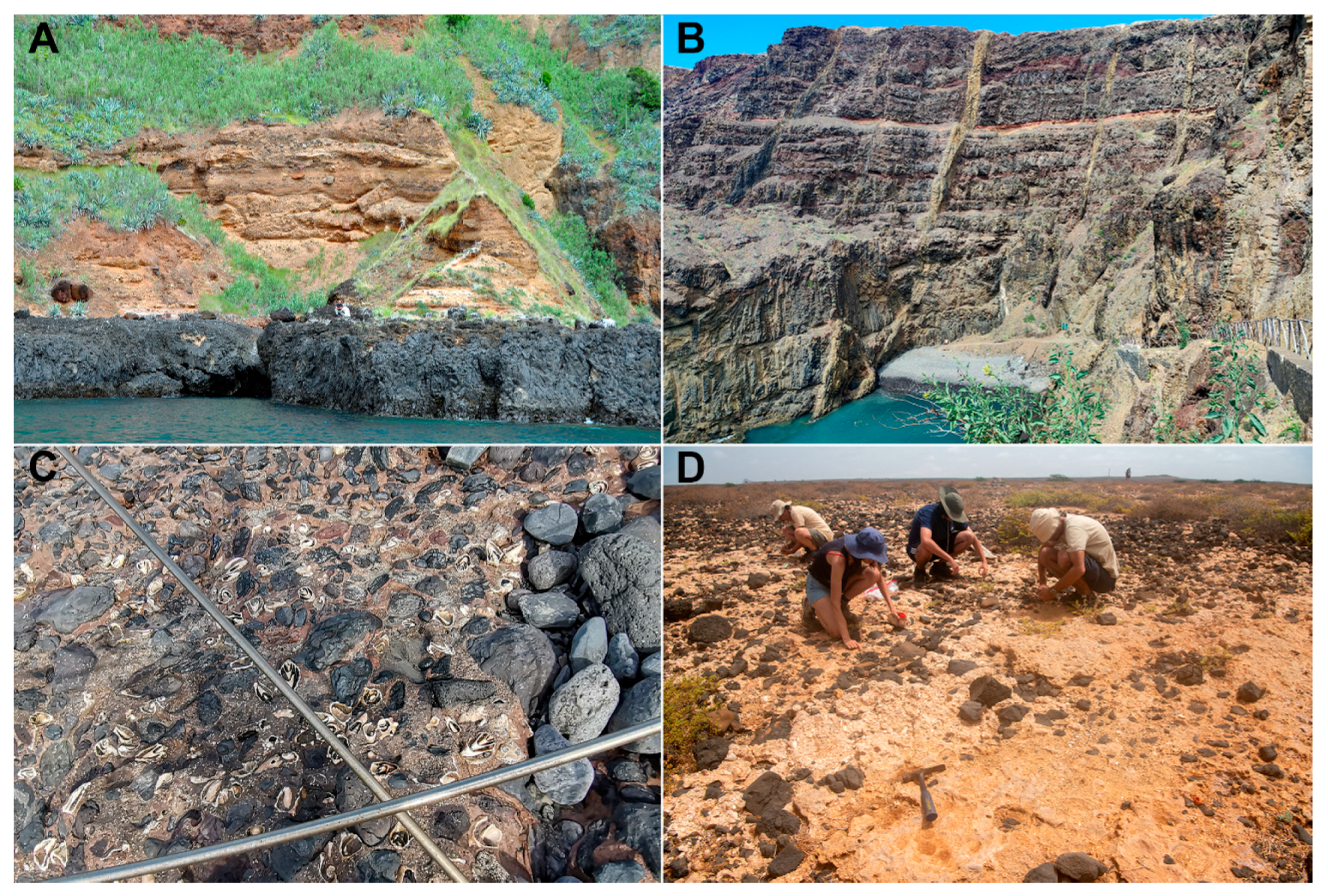 - Melo, C.S.; Martín-González, E.; da Silva, C.M.; Galindo, I.; González-Rodríguez, A.; Baptista, L.; Rebelo, A.C.; Madeira, P.; Voelker, A.H.L.; Johnson, M.E.; et al. Reply to the comment by Meco et al. on “Range expansion of tropical shallow-water marine molluscs in the NE Atlantic during the last interglacial (MIS 5e): Causes, consequences and utility of ecostratigraphic indicators for the Macaronesian archipelagos”. Quat. Sci. Rev. 2022, 28, 107535. [Google Scholar]