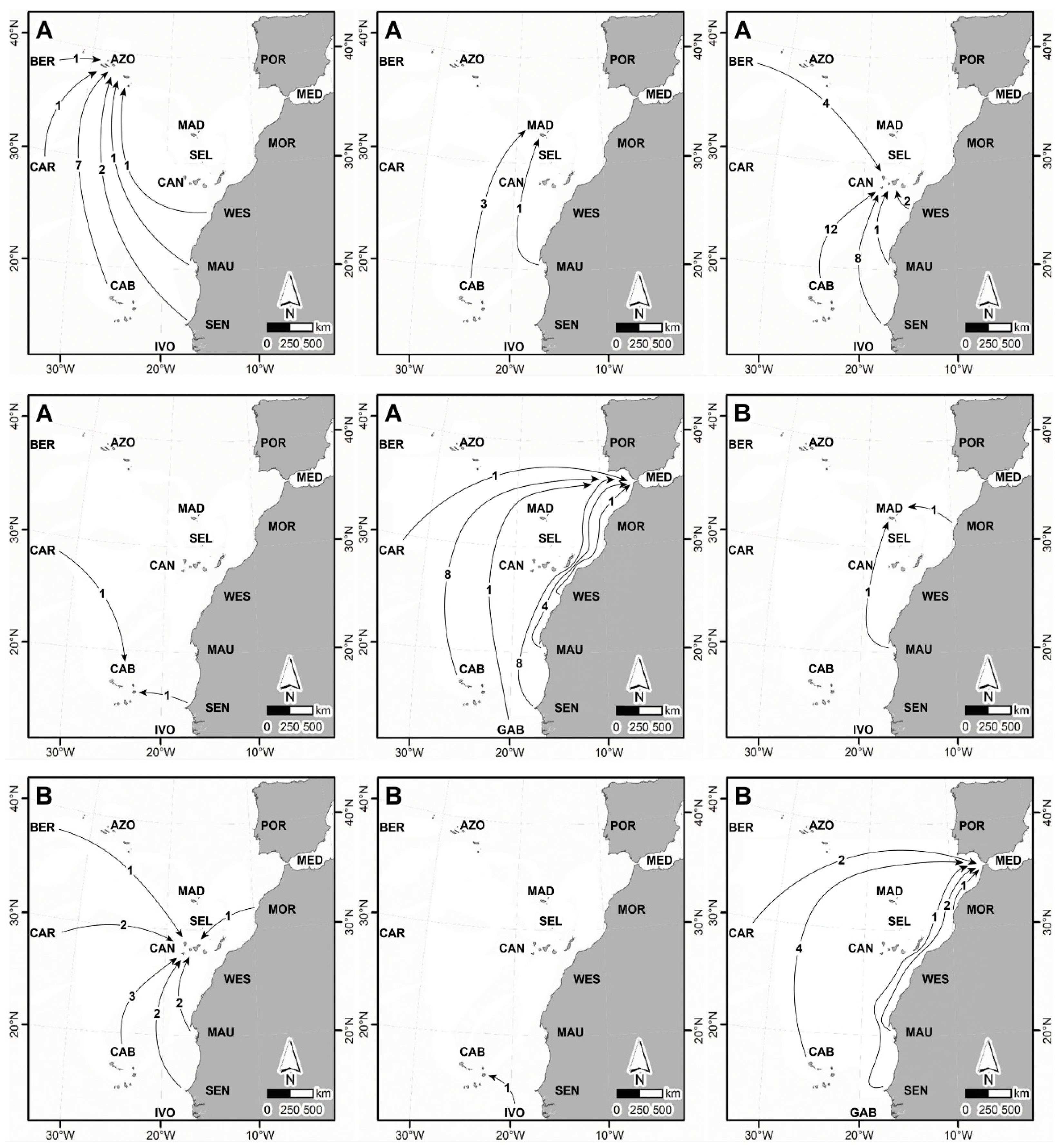 - Barcelos, L.M.D.; Barreiros, J.P. Pinniped (Carnivora, Phocidae) occurrences in the Azores Archipelago (NE Atlantic). Biodivers. Data J. 2022, 10, e96342. [Google Scholar] [CrossRef]