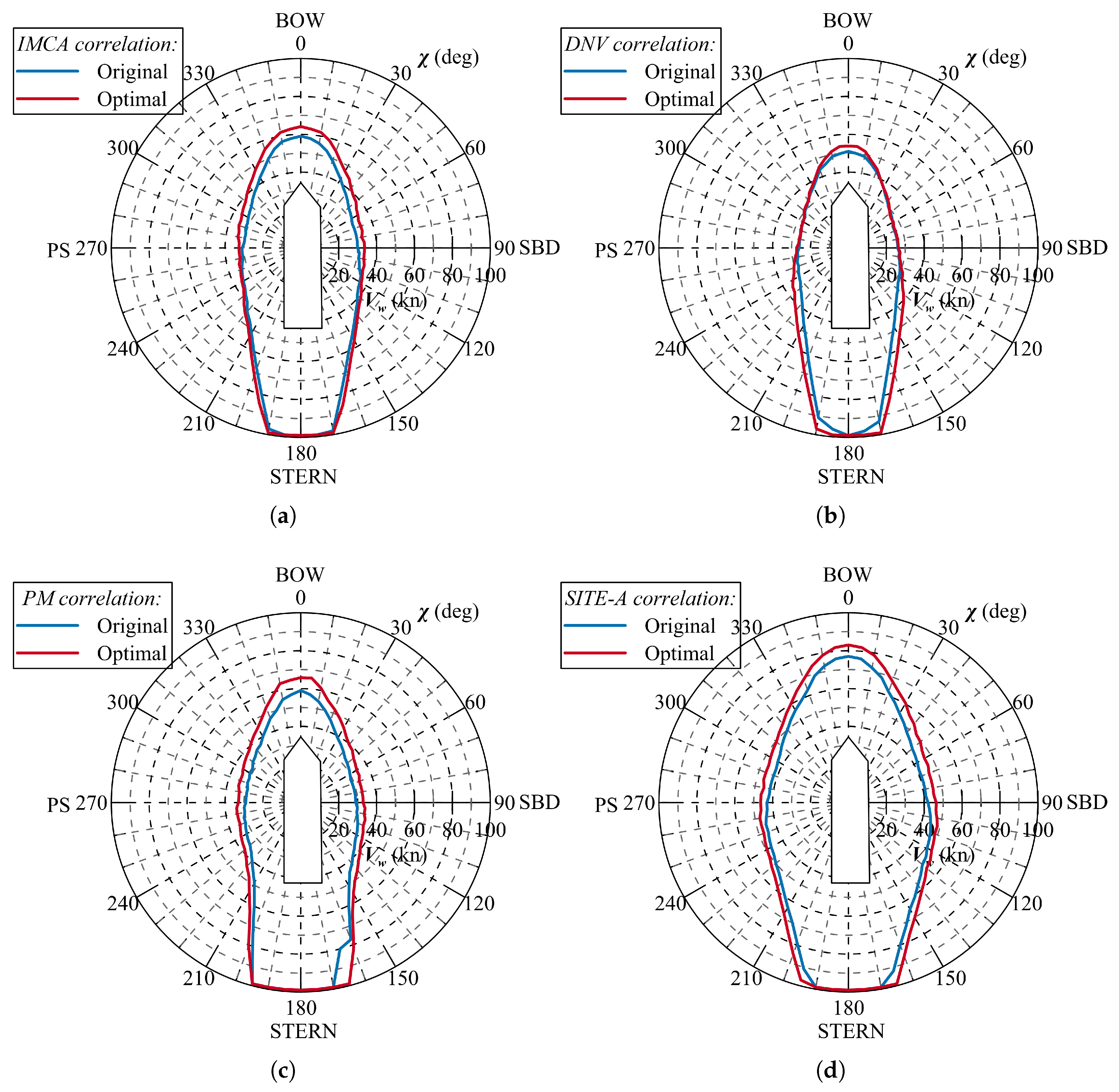 are different among the selected wind–wave correlations, due to the different capability areas of reference, as shown for the original configuration in