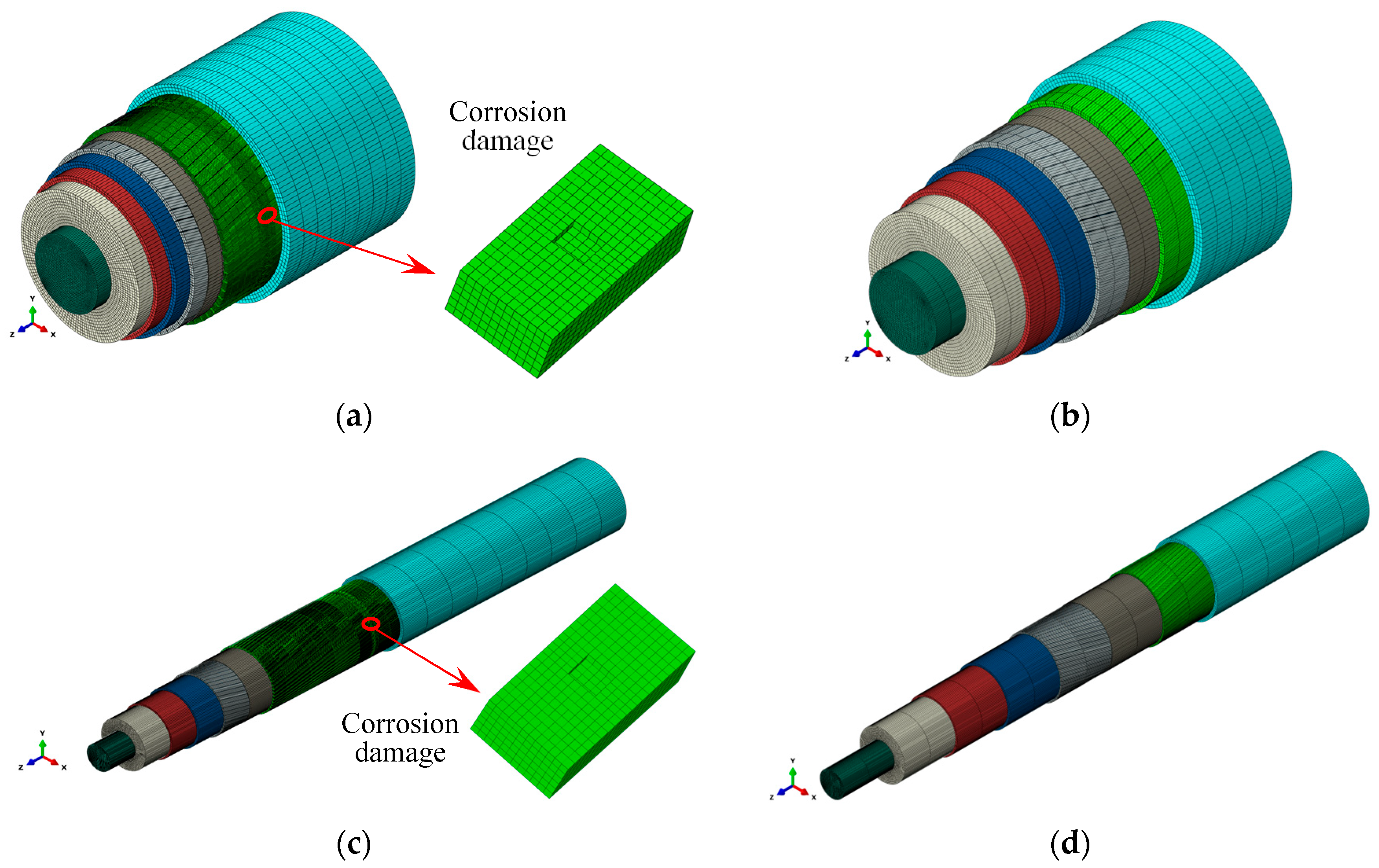 - Lu, H.; Vaz, M.A.; Caire, M. A finite element model for unbonded flexible pipe under combined axisymmetric and bending loads. Mar. Struct. 2020, 74, 102826. [Google Scholar] [CrossRef]