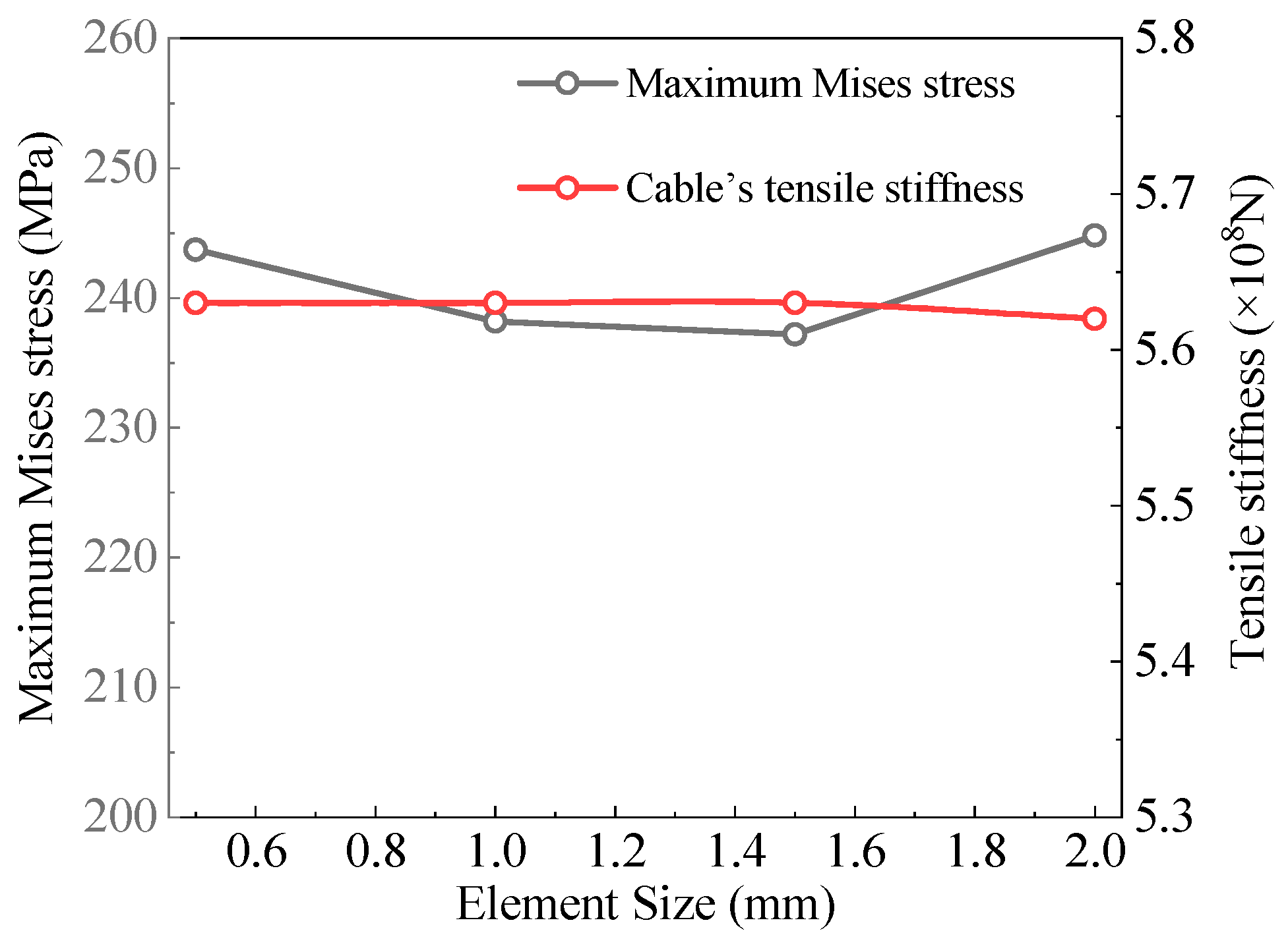 - Zhang, D.; Ostoja-Starzewski, M. Finite element solutions to the bending stiffness of a single-layered helically wound cable with internal friction. J. Appl. Mech. 2016, 83, 031008. [Google Scholar] [CrossRef]