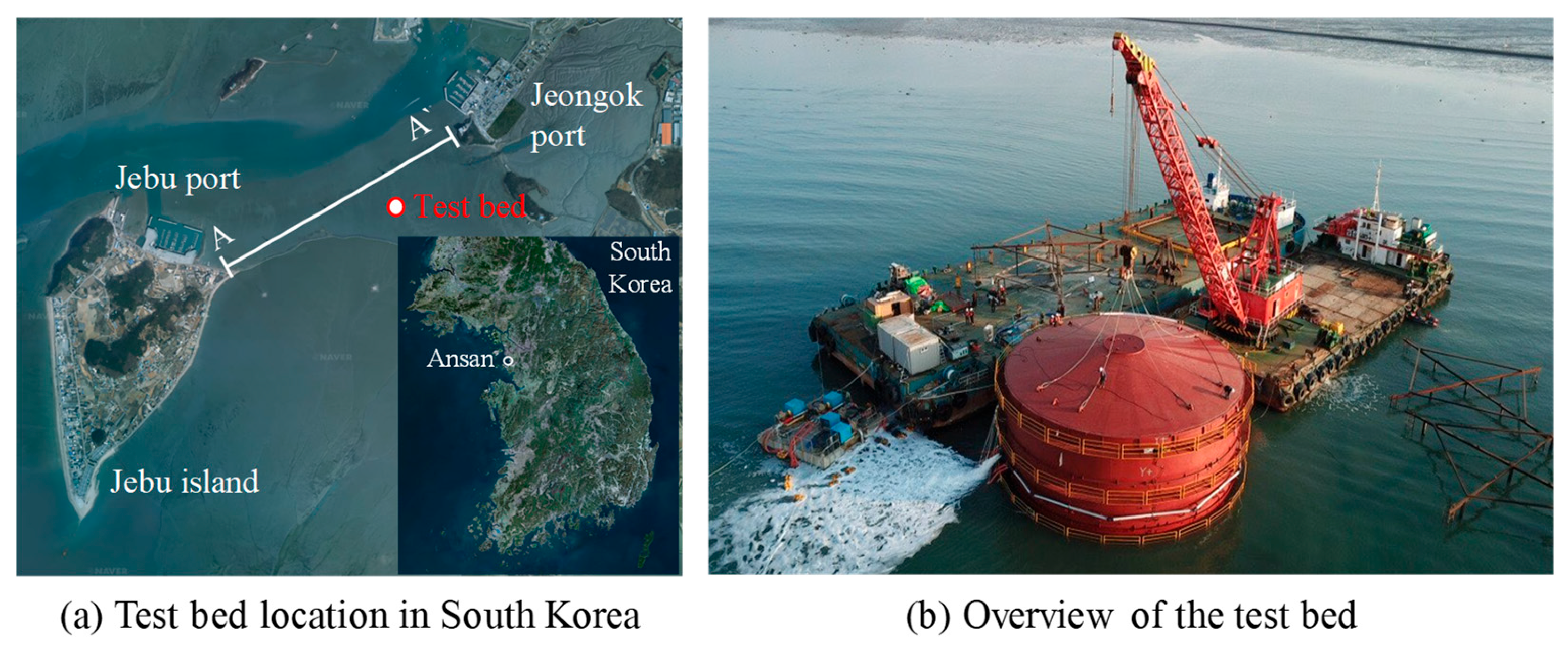 Therefore, this study fabricated a 20 m-diameter, 13 m high circular steel cofferdam composed of three prefabricated segments and a suction lid, and conducted a full-scale field installation and removal test in Jebudo, Republic of Korea. This work represents the first full-scale verification of suction-driven cofferdam technology, extending previous small-scale demonstrations (5 m diameter) to realistic offshore construction conditions.