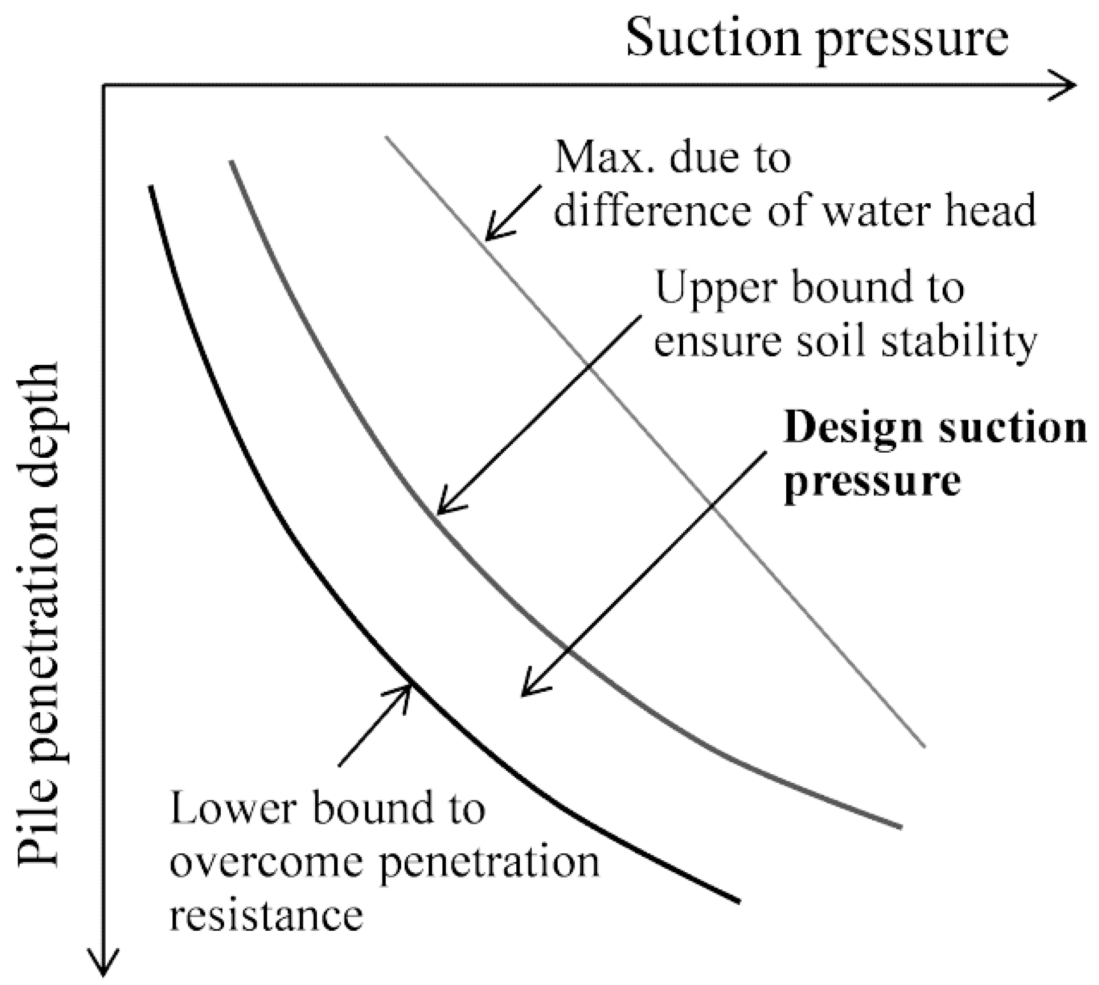 Suction-driven installation has been increasingly considered as a promising alternative to overcome these drawbacks. Suction caisson foundations, which are widely applied in the offshore energy and oil and gas industries, provide rapid and quiet installation by creating a pressure differential between the inside and outside of a closed skirted structure. This method eliminates the need for pile driving or heavy excavation, reduces noise and vibration, and allows for reversible extraction by applying reverse suction. In recent decades, extensive research has addressed suction caisson foundations in sands, clays, and layered soils, focusing on the penetration behavior, bearing capacity, cyclic and combined loading, and long-term stability [
