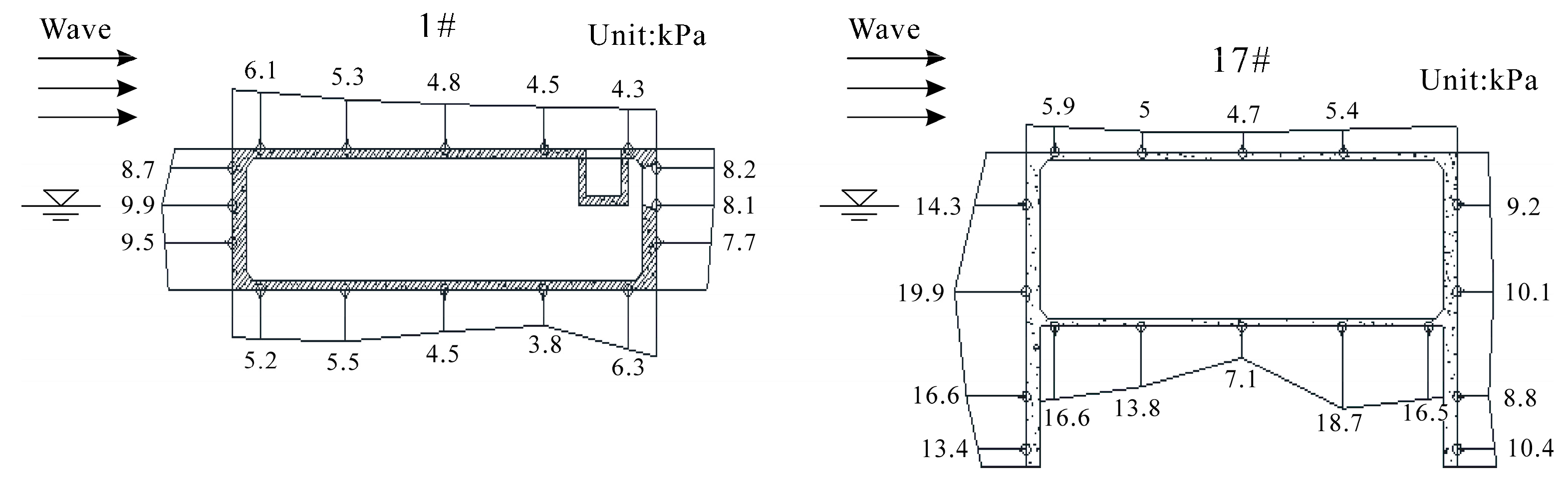 Water tank experiments are convenient for investigating the overall hydrodynamic characteristics of box-type FBs and the wave distribution. Martinelli et al. [